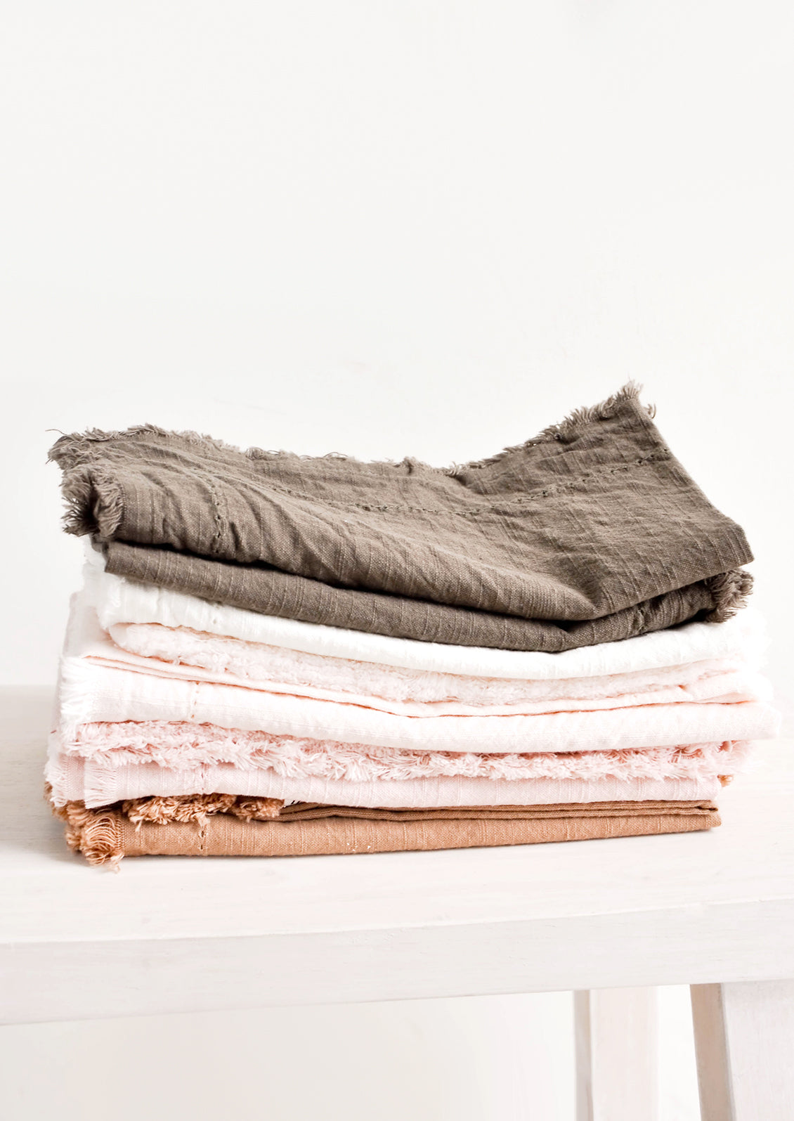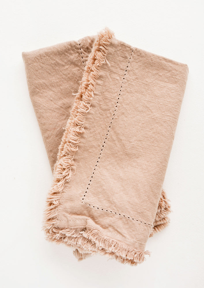 A washed finish gives a lived-in softness to these cotton napkins, detailed with a pretty eyelet stitch border and frayed edges.
