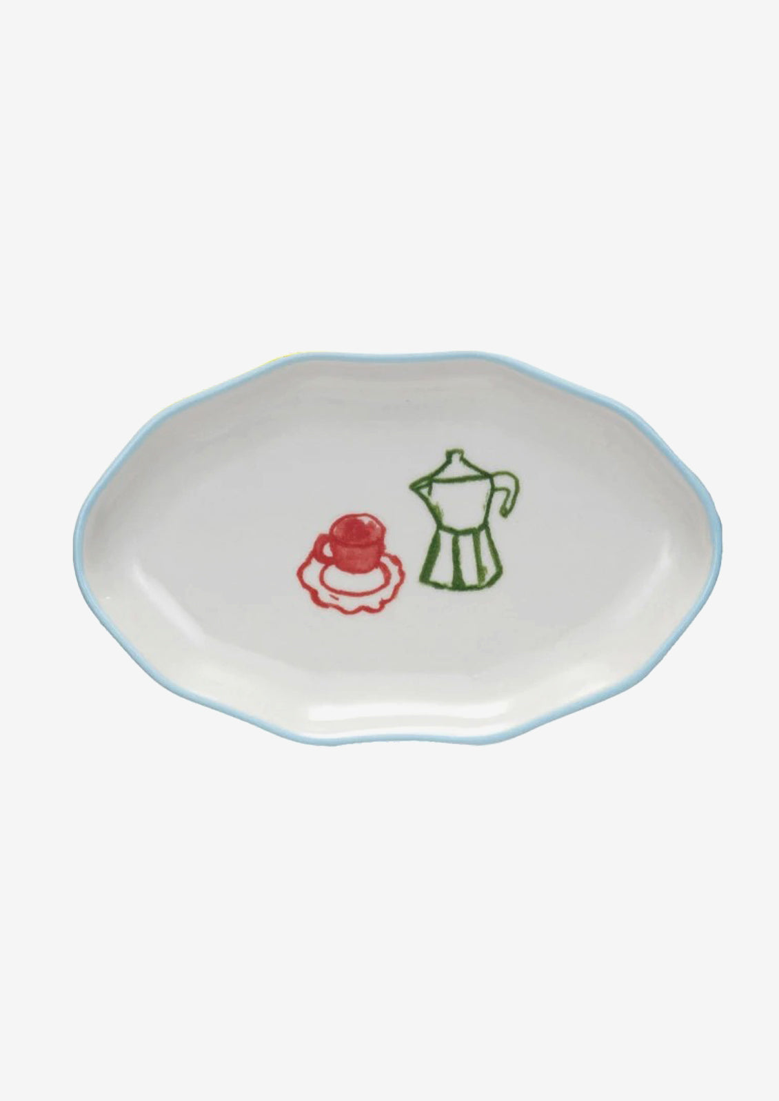 A little landing for rings and things, this tiny porcelain dish shows off a colorful, playful illustration.
