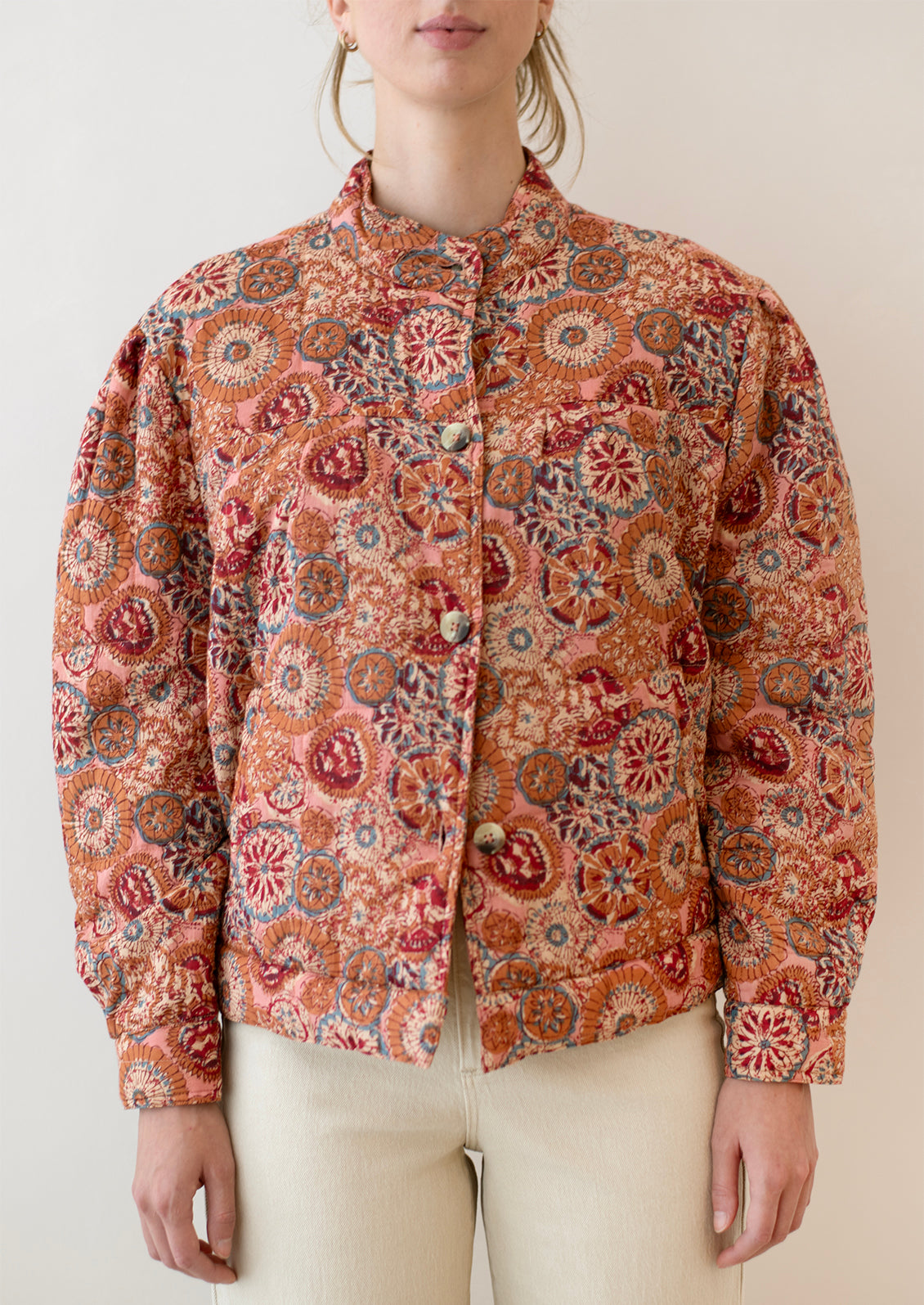 In a mid-weight perfect for spring and fall, this cheerful jacket shows off a flattering blouse-like fit.