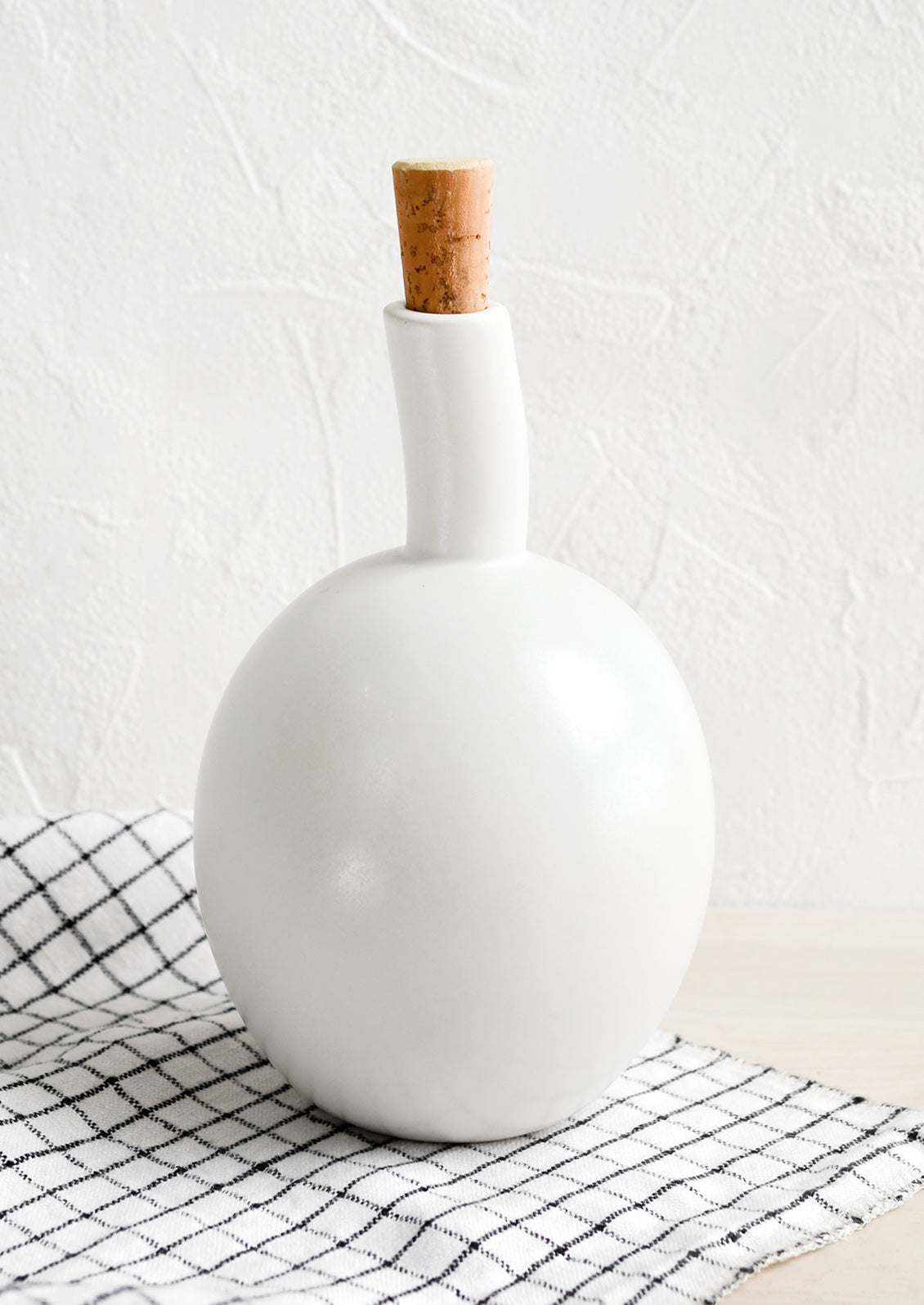 Handmade by Tunisian craftsmen in fragrant gardens along the Mediterranean Sea, this stoneware cruet ensures olive oil is stored as intentionally as the craft itself. Made from food safe stoneware with a stunning satin finish, the recipe is completely free of toxic heavy metals sometimes found in ceramic forms.
