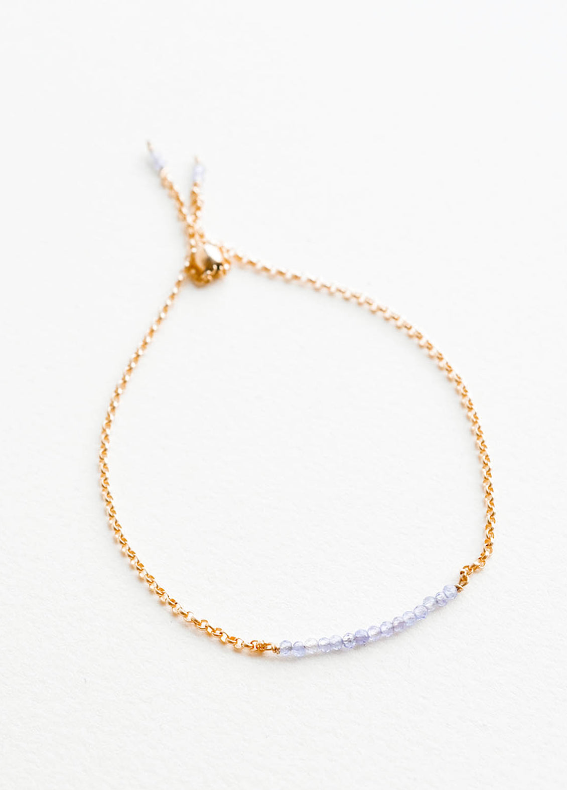 We love this elegant but effortless bracelet as an easy-to-wear, everyday accessory. Real sparkling gemstones (choose from tanzanite, pearl, or peach moonstone) shimmer along a gold fill chain. The best part? A sliding closure means you don't have to find someone to help you take your bracelet on and off (not that you'll ever want to take it off).