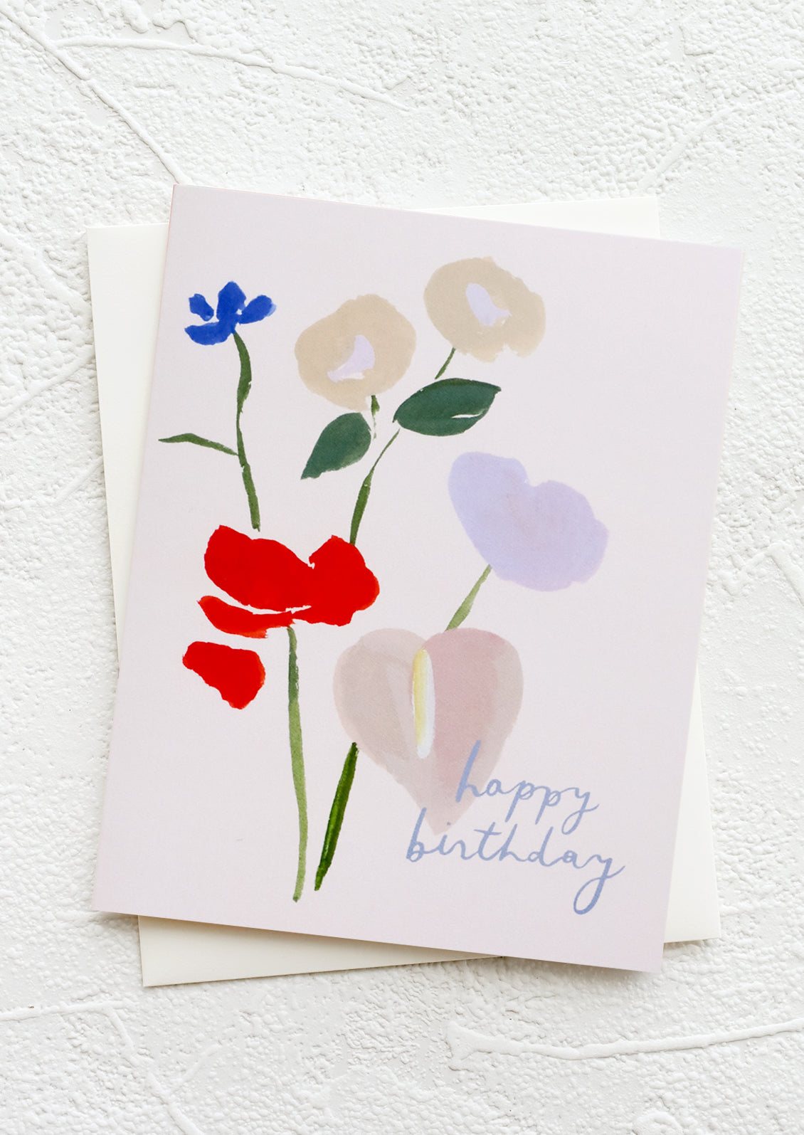 A thoughtful bouquet of fresh blooms in a painterly interpretation gives a graceful, artistic feel to this birthday card. From Our Heiday.