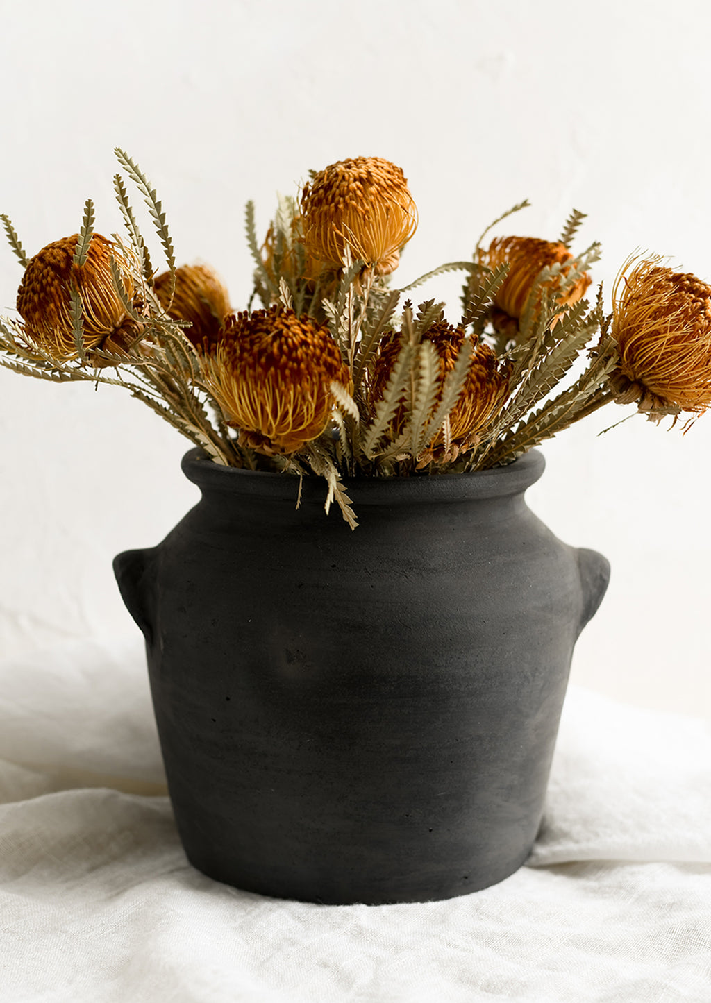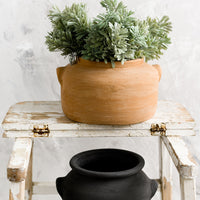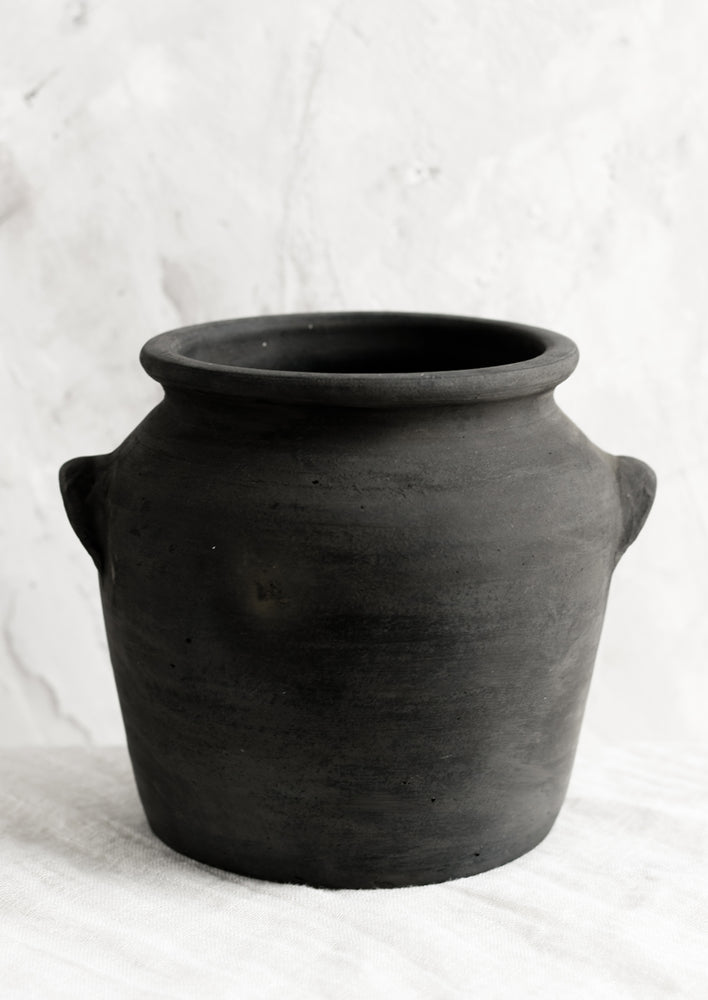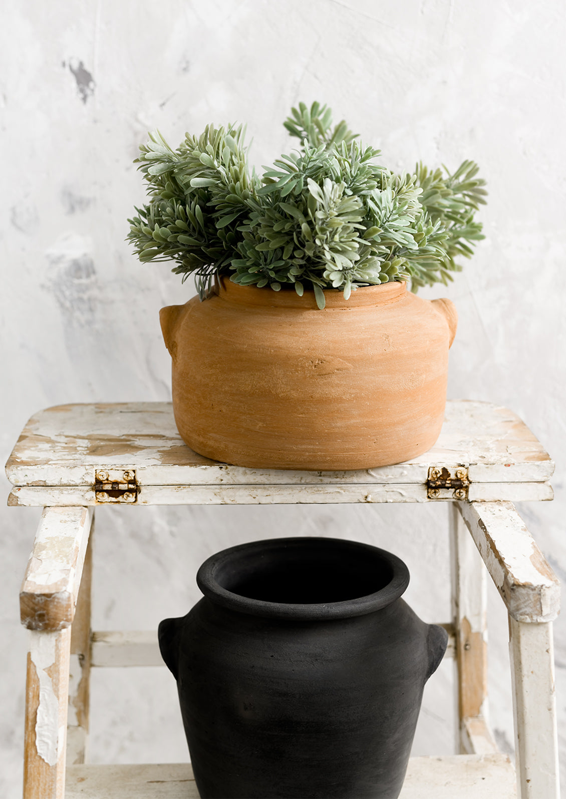 With a perfectly weathered finish, this terracotta vessel takes on the look of antique clay pottery — choose from a classic, crock-shaped blackened silhouette or a versatile, wide and shallow terracotta style.