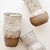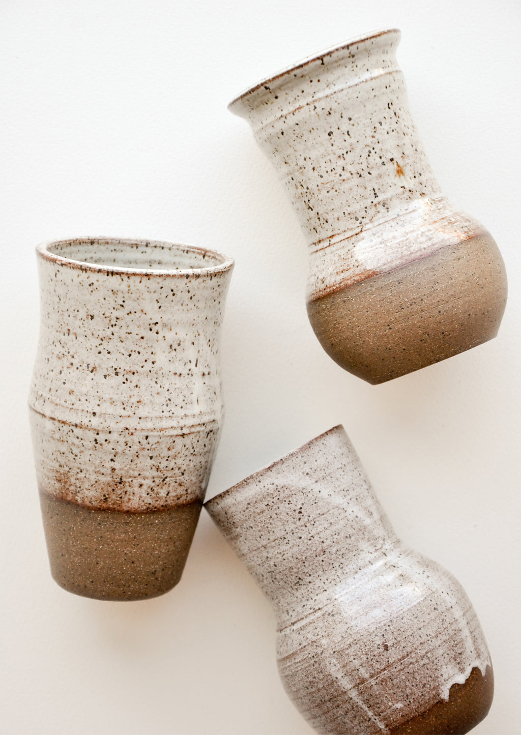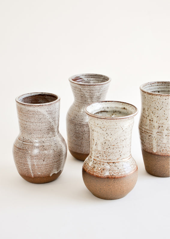 A study of form takes place throughout a collection of these rustic vases from ANK—each one shows off its own unique shape (selected at random, which is part of the fun).