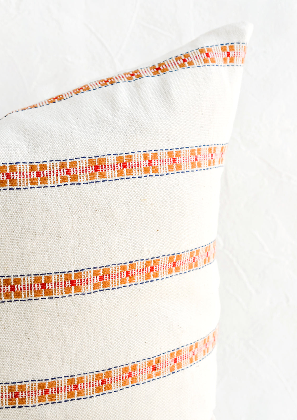 Handcrafted from heirloom organic kala cotton grown in Gujarat, India, this beautifully embroidered pillow is handwoven on a traditional wooden loom by an artisanal community of weavers.