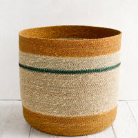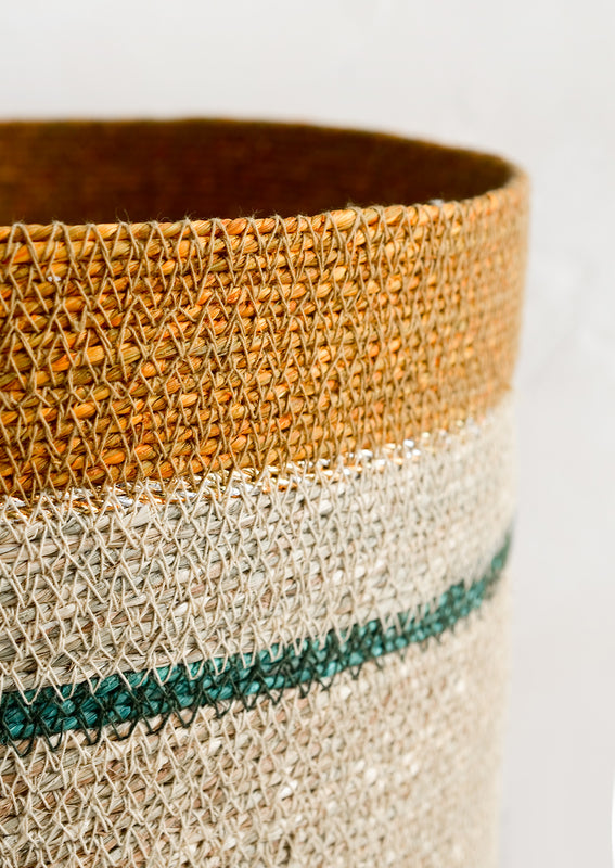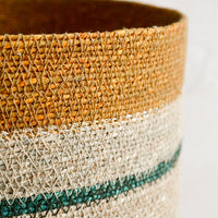 Woven in natural seagrass with a subtle hint of metallic sparkle (a subtle, thin band of gold and silver shimmers between the natural hues), this versatile basket puts a pretty spin on storage.