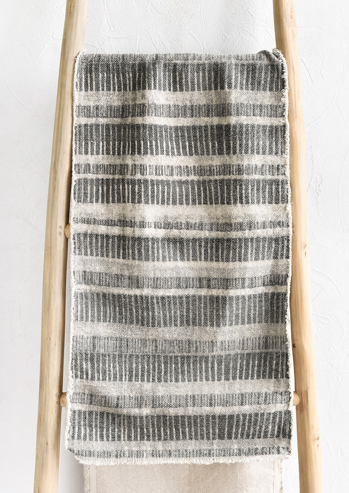 With a faded, distressed look, this thick cotton canvas table runner is inspired by the beauty of vintage textiles. Frayed edges lend a warm, effortless finish.