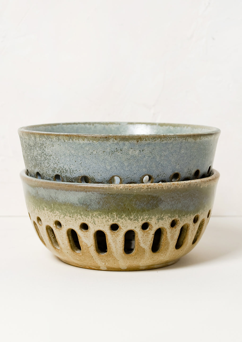 In a beautifully mottled, mossy glaze, this ceramic colander exudes a perfectly rustic charm—use it for everything from herbs to berries to mushrooms (and more).