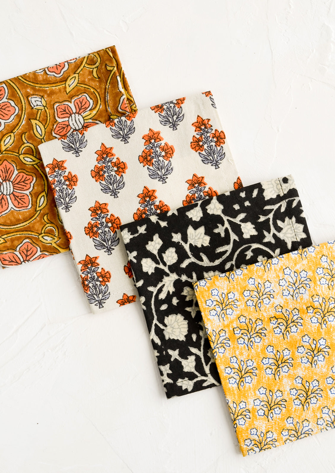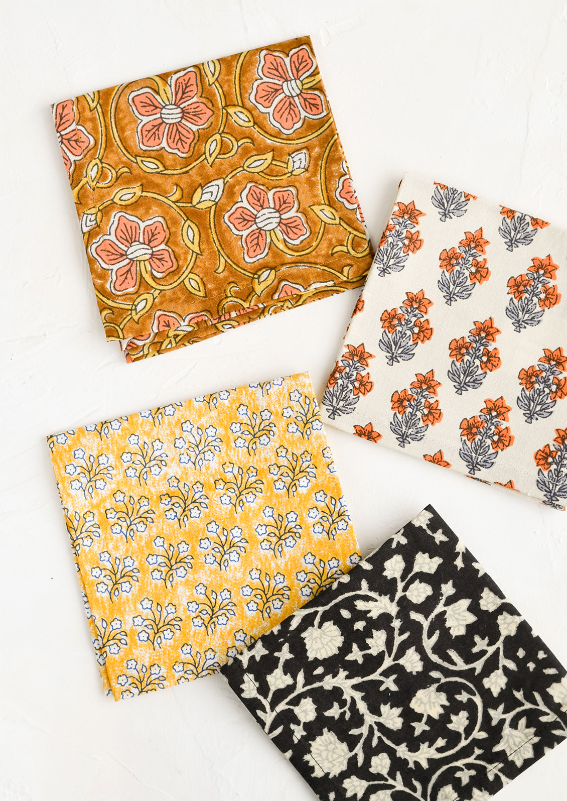 The vibrancy of traditional block printing comes alive in this set of cocktail napkins, comprised of four unique colors and patterns (you'll receive the exact combination shown).