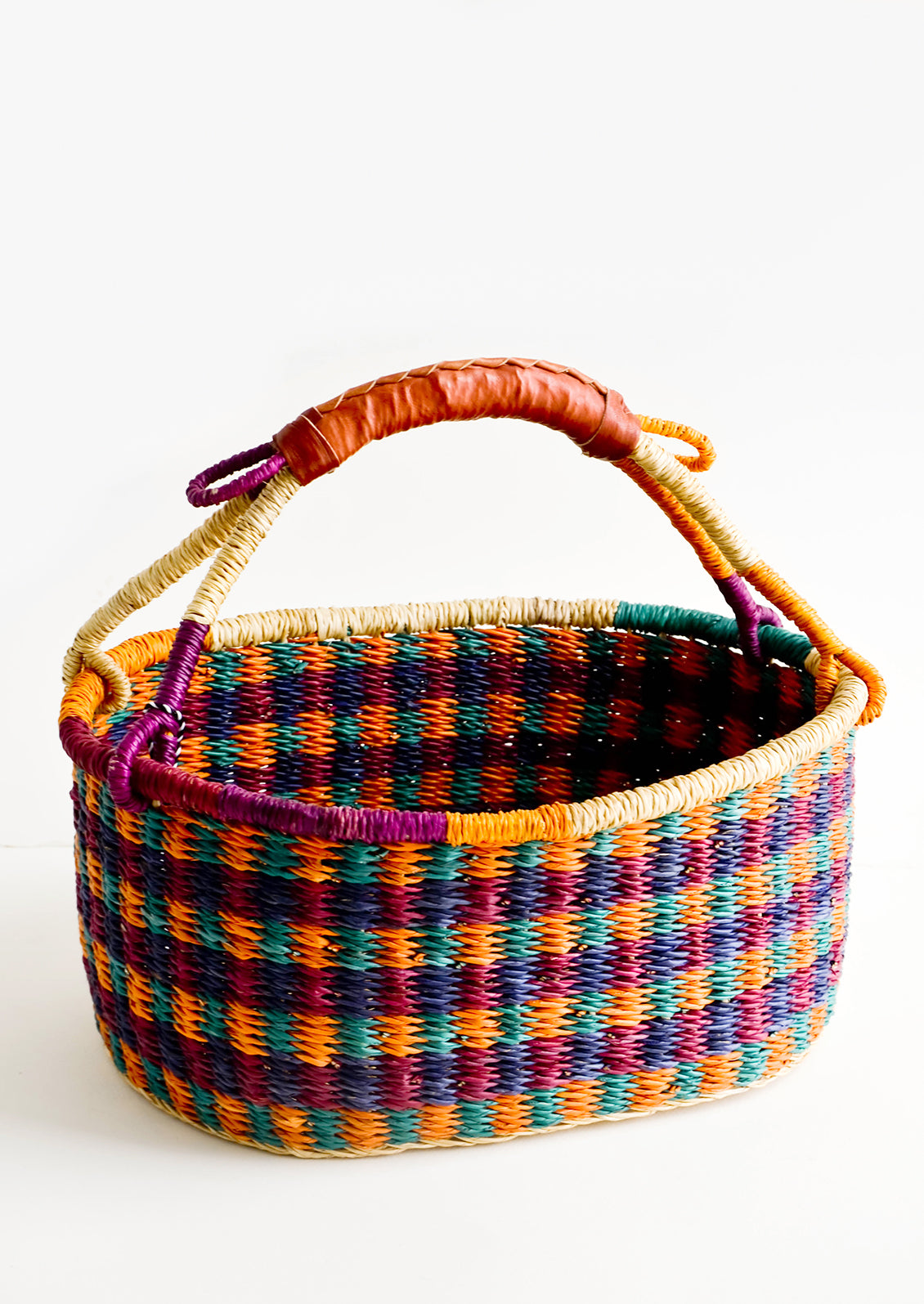 The perfect accessory for gardening and foraging, this African bolga basket is made from all-natural materials—dried grass and genuine leather. If gathering berries and herbs isn't your thing, it also works for magazine storage and the like.