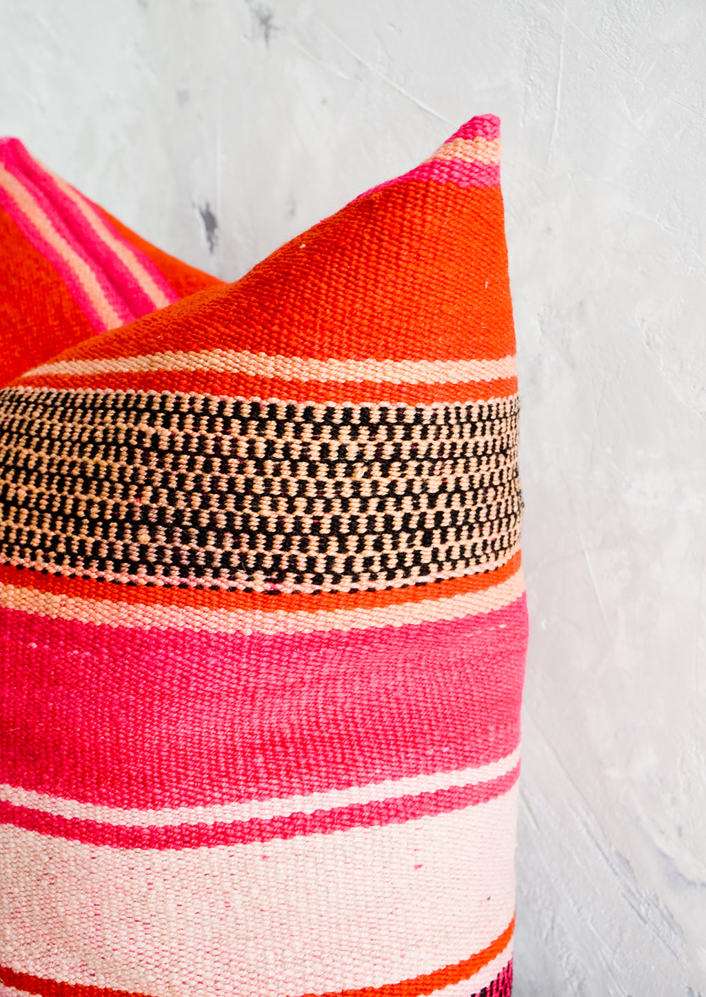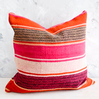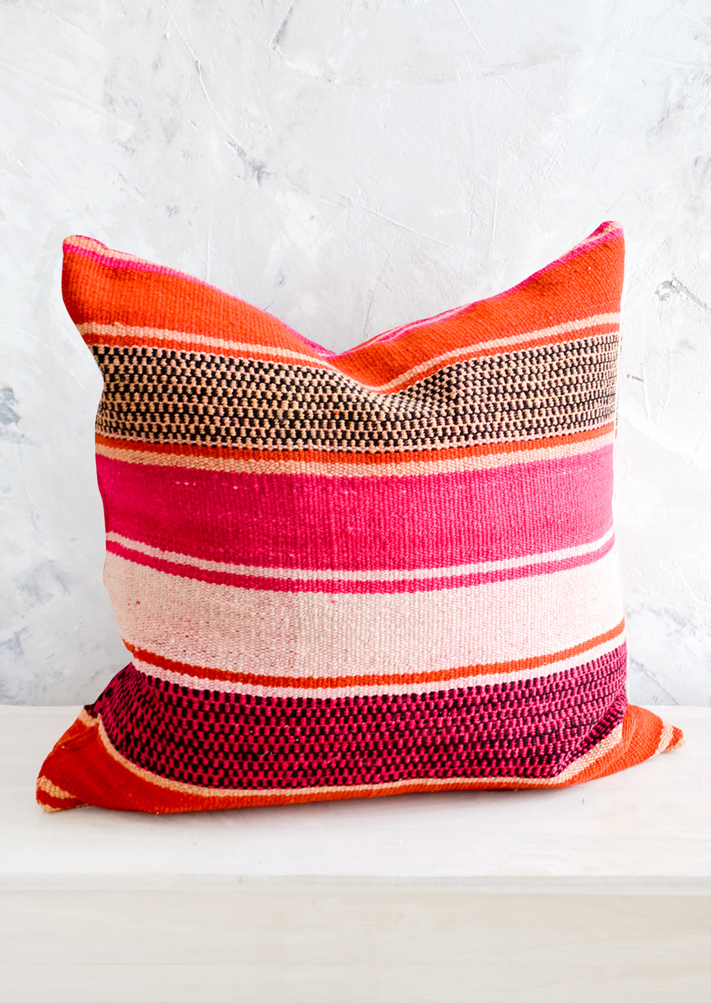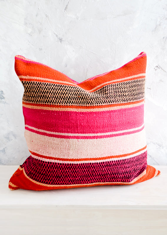 Traditional Bolivian textiles known as frazadas have been hand-woven in the Andes since pre-Hispanic times, traditionally used to protect against the high-altitude cold. Reinvented in the form of a throw pillow using textiles anywhere from 30 to 50 years old, these colorful creations add an instant hit of worldly character.
