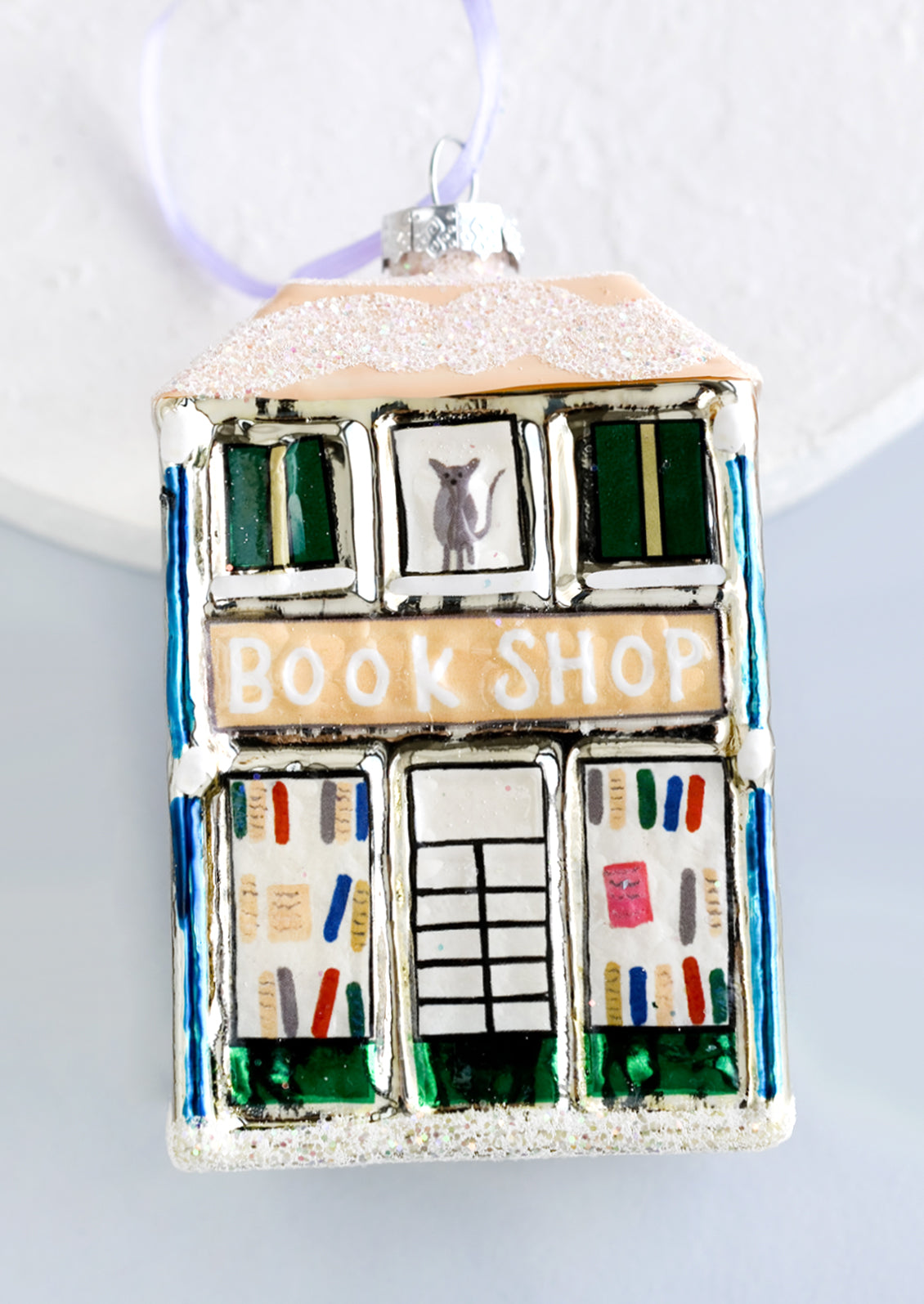 For the book lover in your life, this delicately detailed ornament shows off a three-dimensional book shoppe (with back windows and all!).
