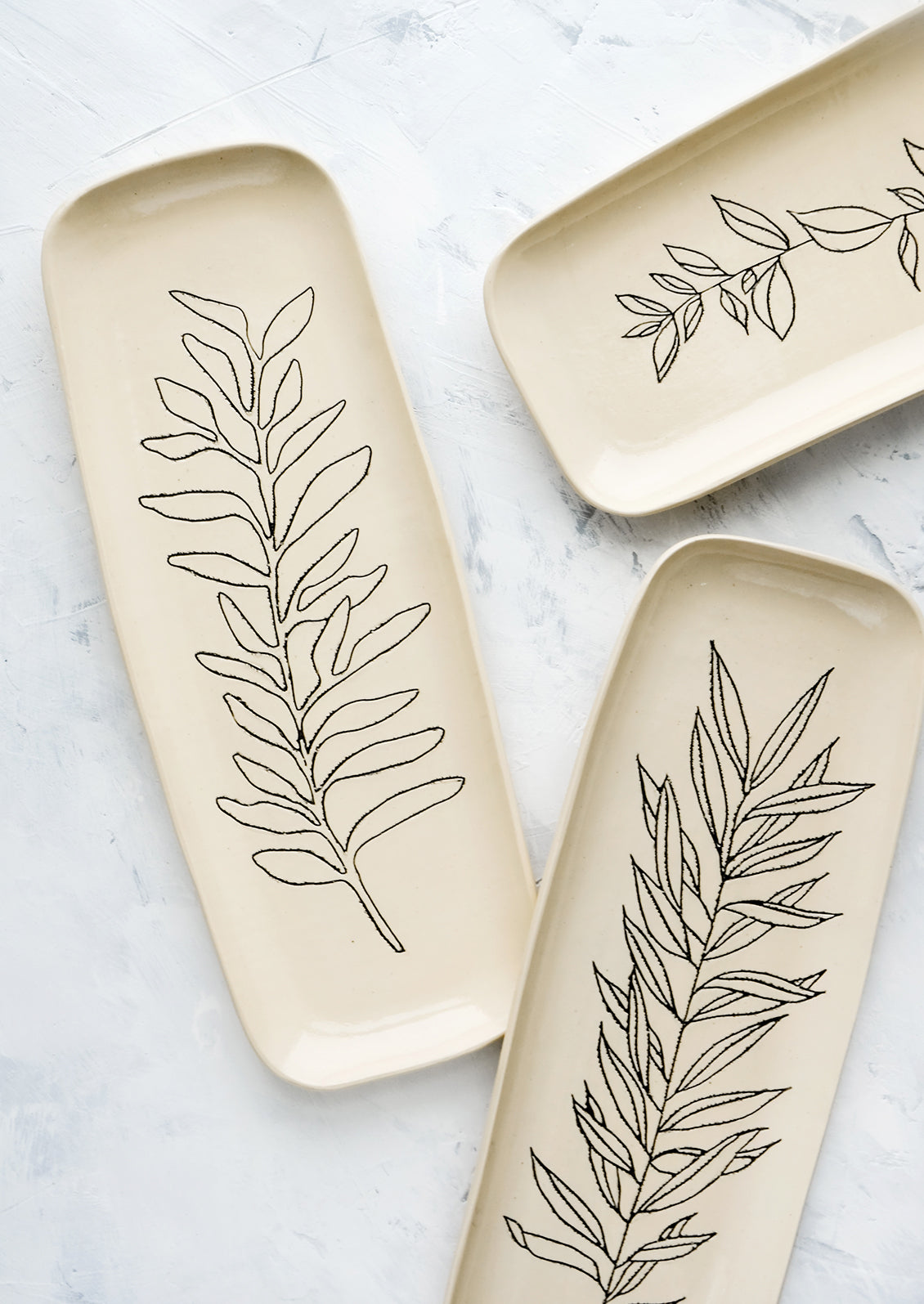 Casey Seawell Freeman's functional, handmade tableware is meant to be used in the ritual of everyday life. Gathering inspiration from the natural world, each piece serves as a daily celebration of natural beauty. These botanical trays, offered in five different styles, are individually built and etched by hand.