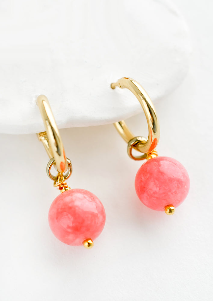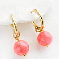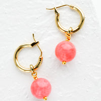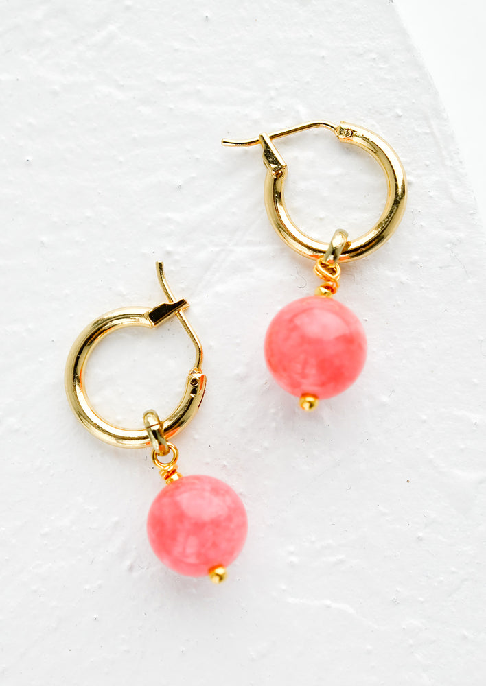 (Almost) good enough to eat—these upbeat earrings begin with a gold hoop base, carrying a spherical polished pink agate stone for a playful finish.