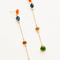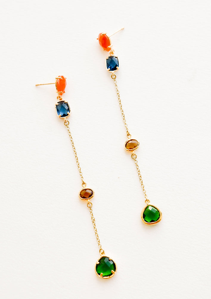 An upbeat mix of hues shines on in faceted glass—staggered along a delicate golden chain, these colorful strands feel subtle yet impactful.