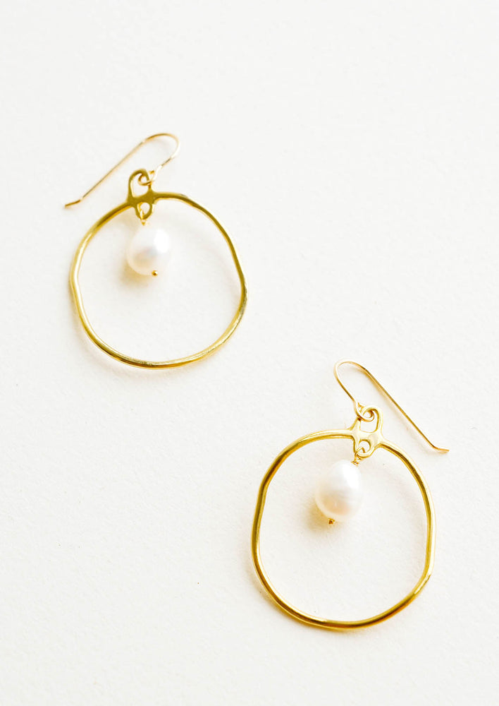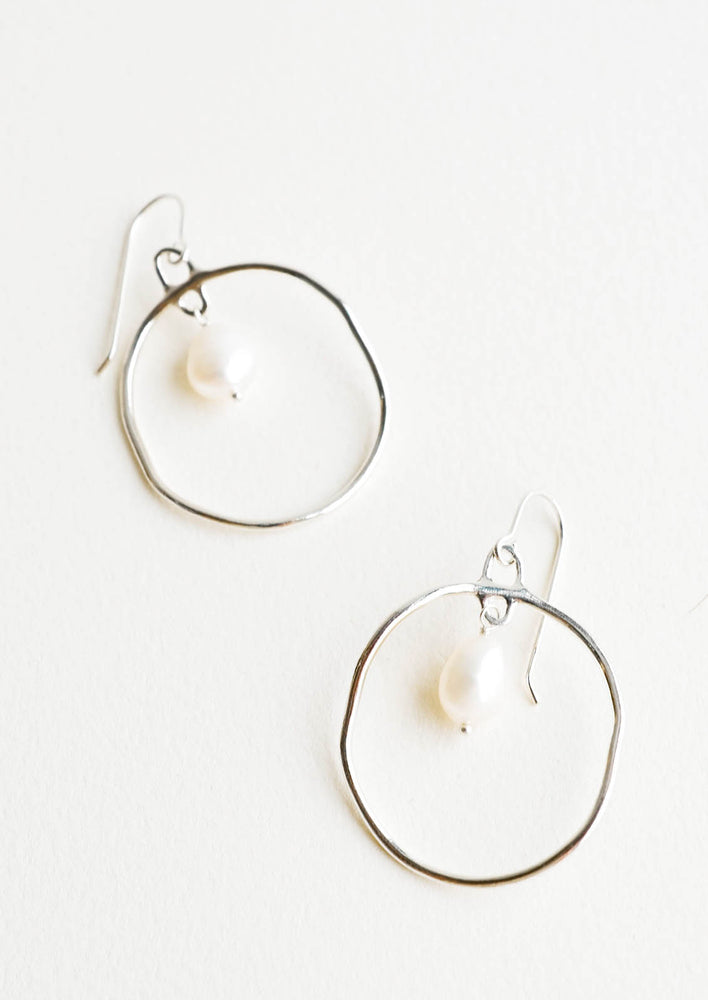 Au natural. We love the organic look of these earrings, exuding effortless elegance. Crafted in pure brass or sterling silver, a baroque pearl floats from within a hand-formed circle.