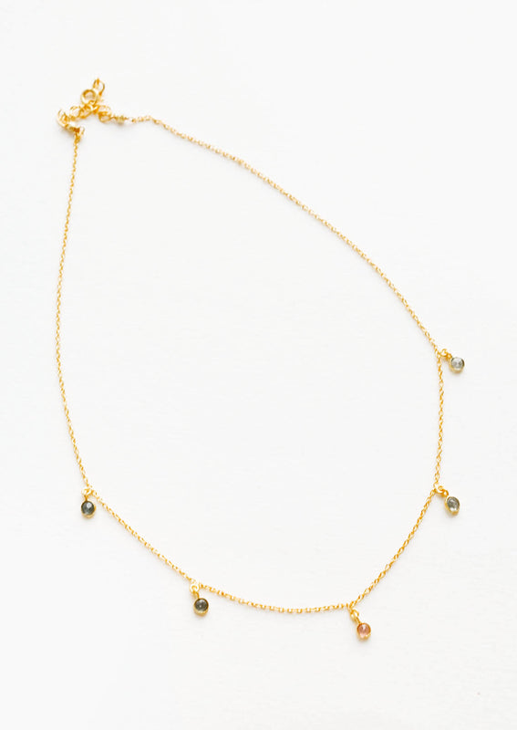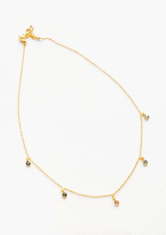 Round, bezeled gemstones spread out in solidarity on a delicate gold vermeil chain—in an adjustable length, this necklace can be worn as a choker or a short necklace.