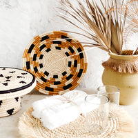 Crafted individually by hand, this intricately woven, patterned basket gives upbeat style to a table or wall. Mix it with artwork or line with parchment paper for serving freshly baked breads.
