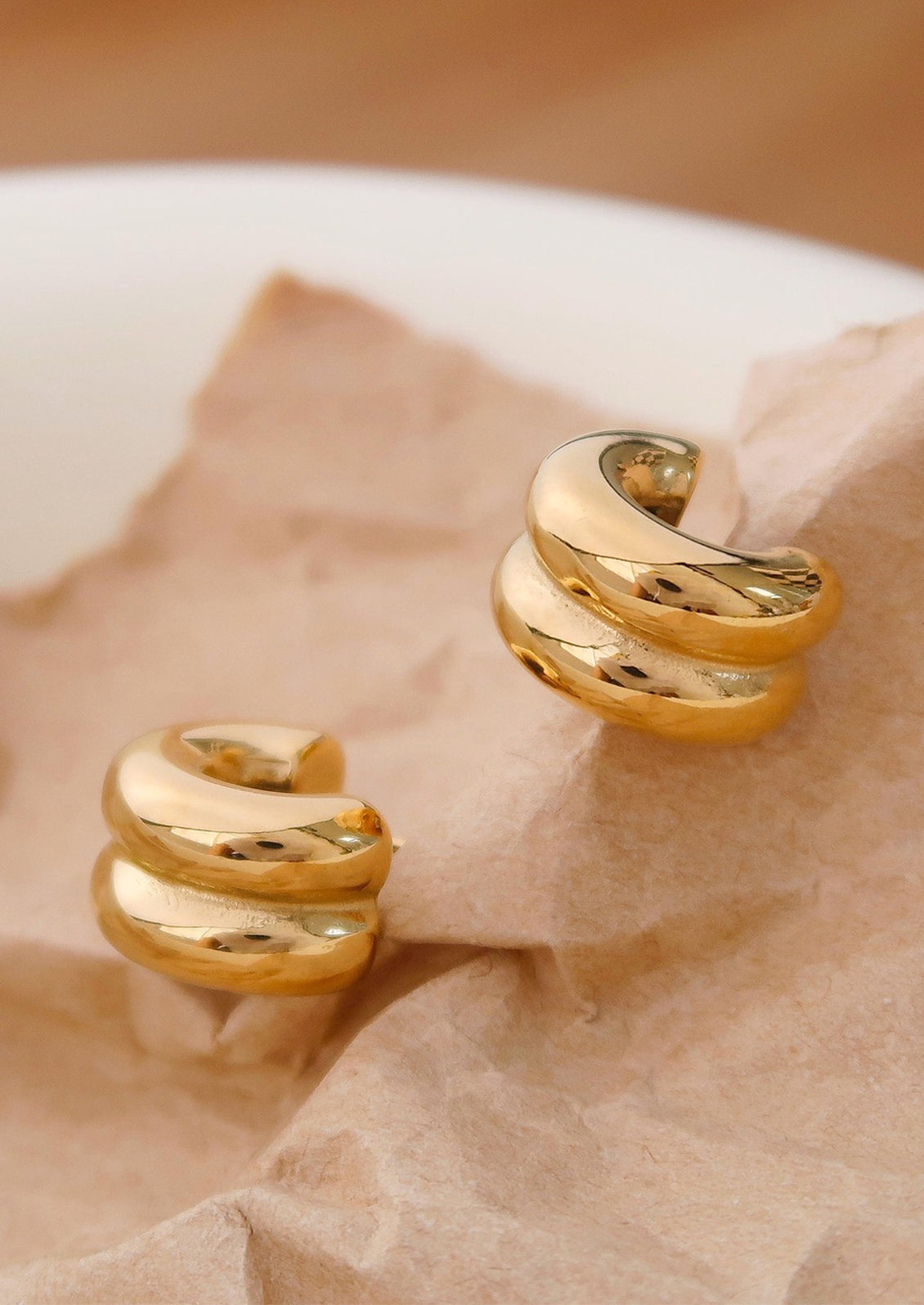 Crafted in gold or silver plated stainless steel, these everyday earrings won't ever tarnish thanks to a special plating process.