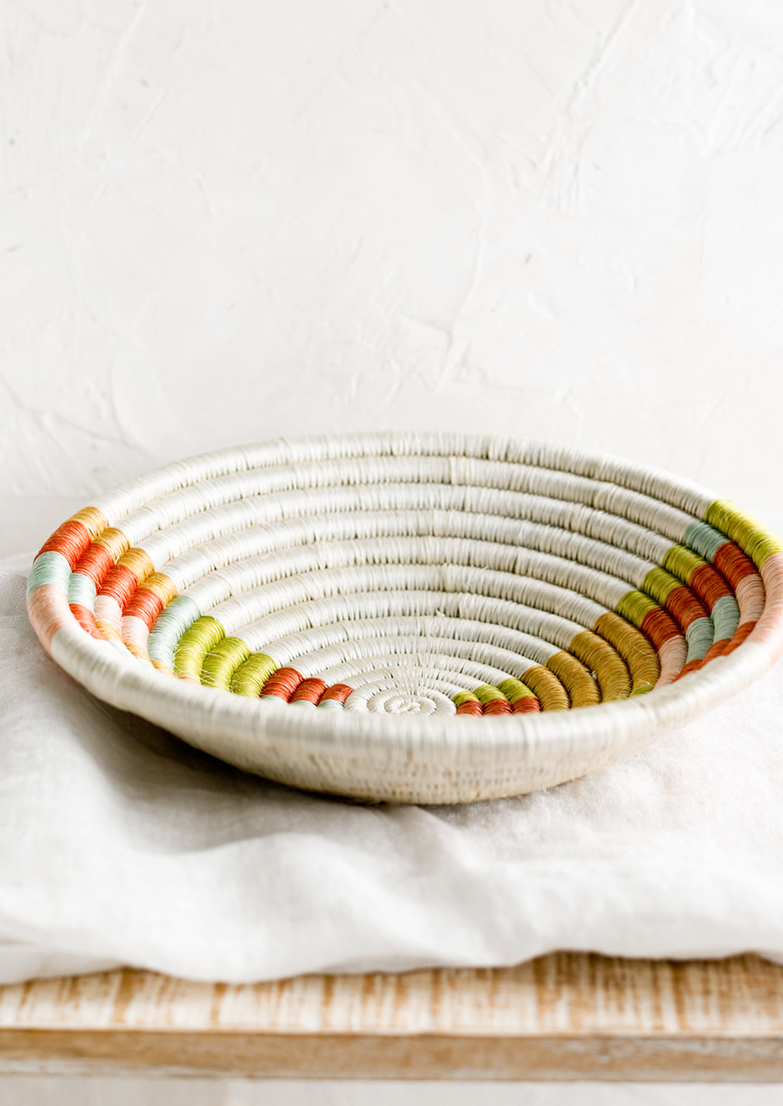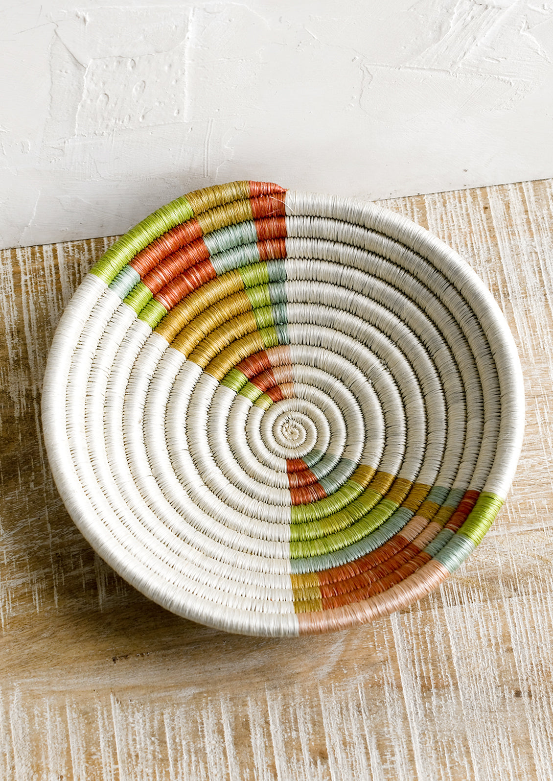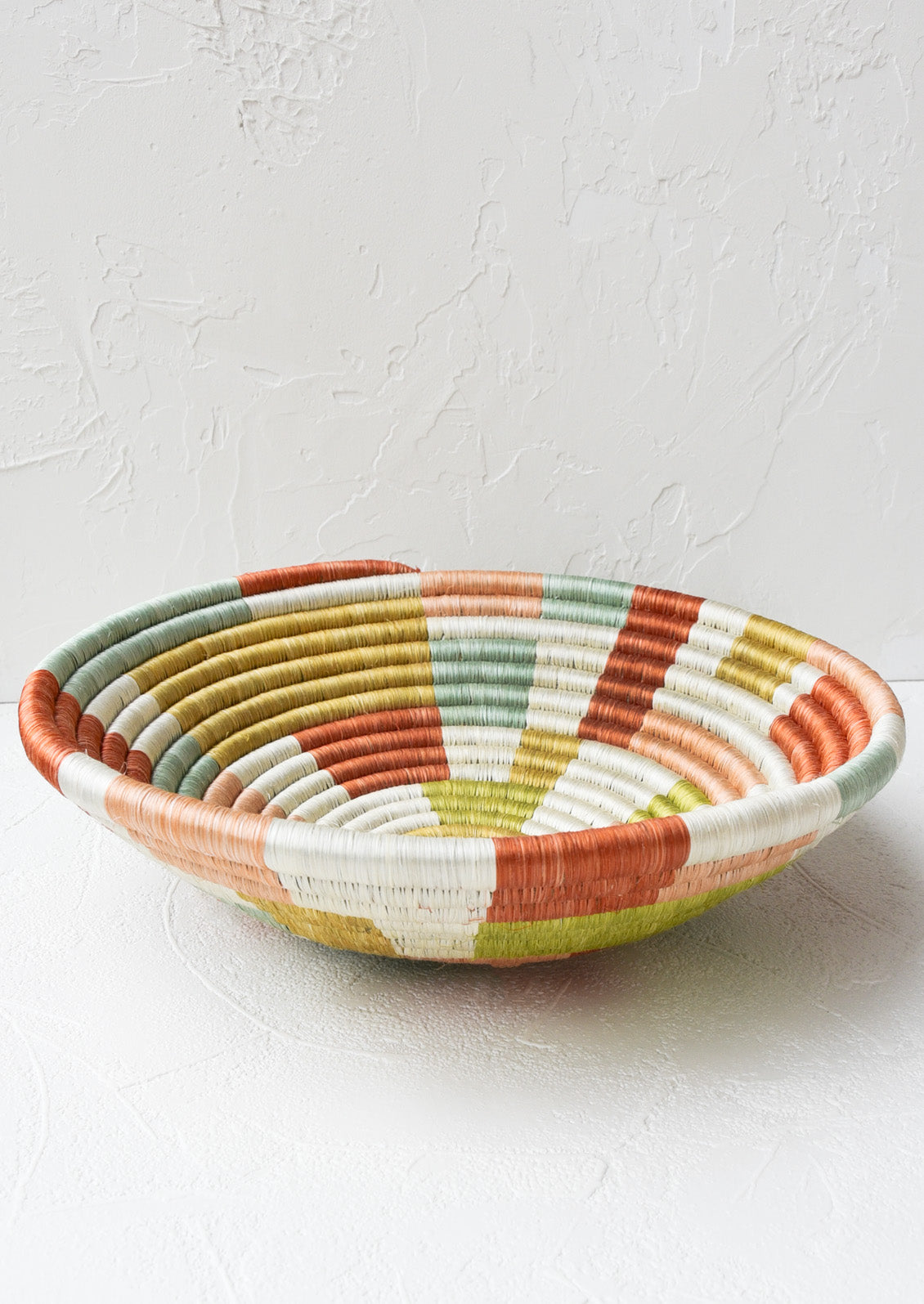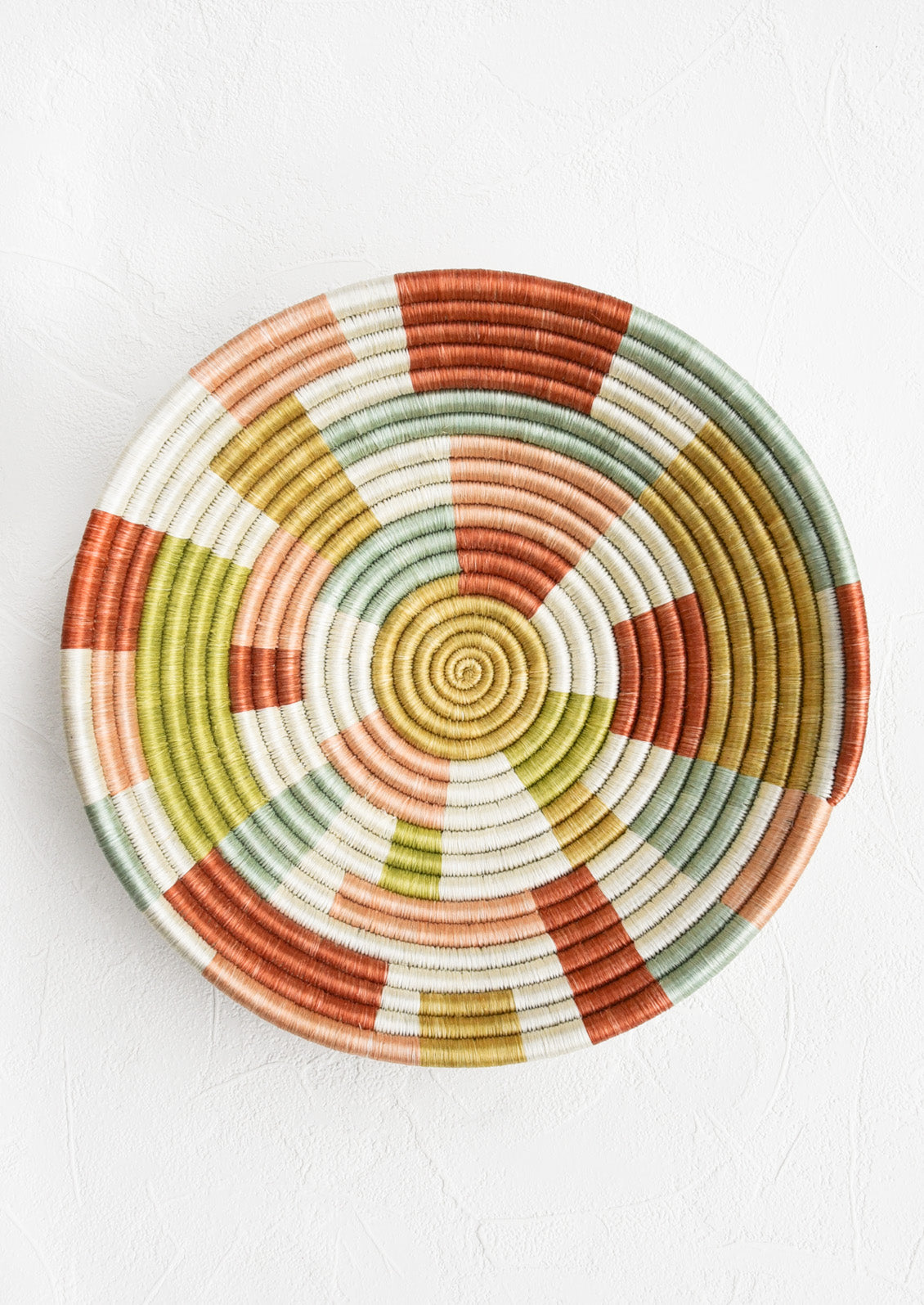 Crafted individually by hand, this intricately woven, colorful basket gives upbeat style to a table or wall. Mix it with artwork or line with parchment paper for serving freshly baked breads.