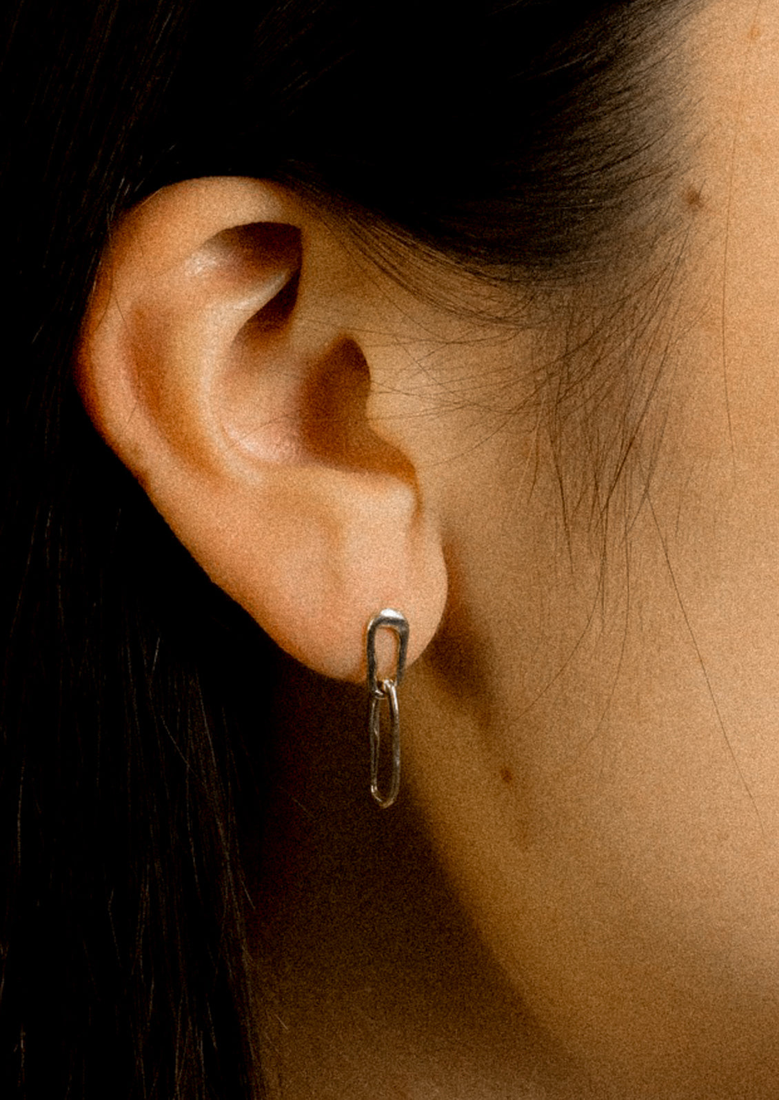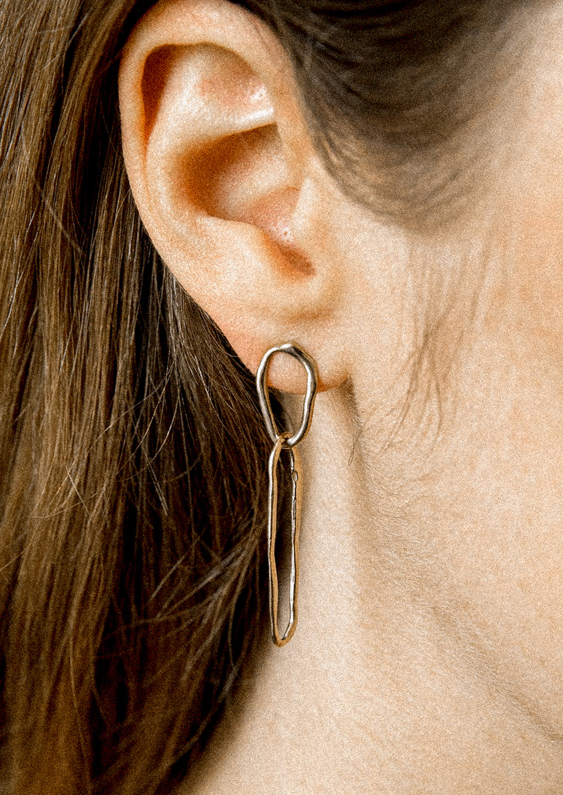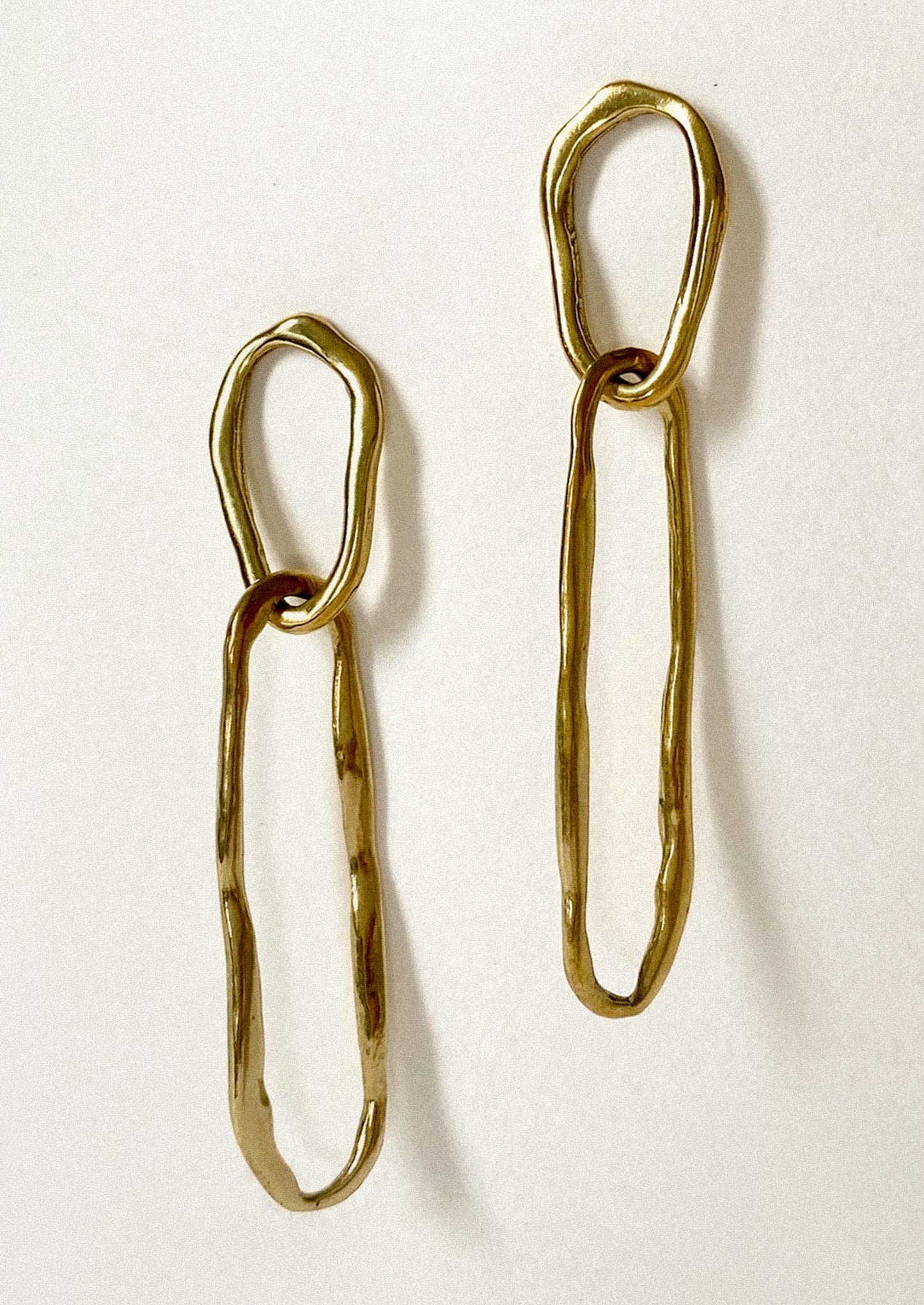 Featuring two connecting links with a textured finish, these timeless earrings are hand carved in wax to create an organic and amorphous shape. Each pair is made by hand by Libby Trajkovski in her Detroit studio.