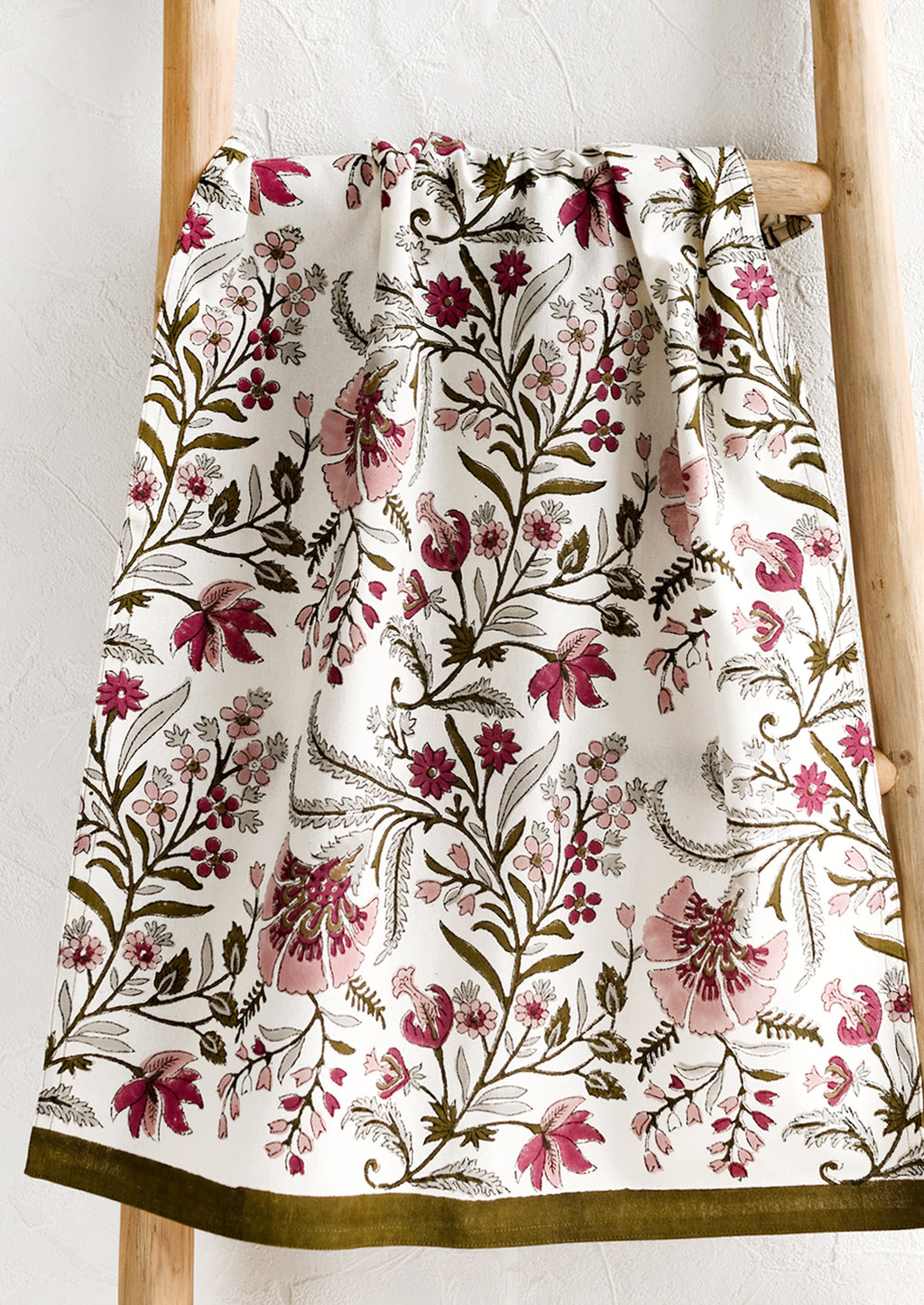 Showing off a floral motif, this cotton tea towel lends a little bit of whimsy to the kitchen, up to the task of drying dishes or just looking pretty on the oven handle.