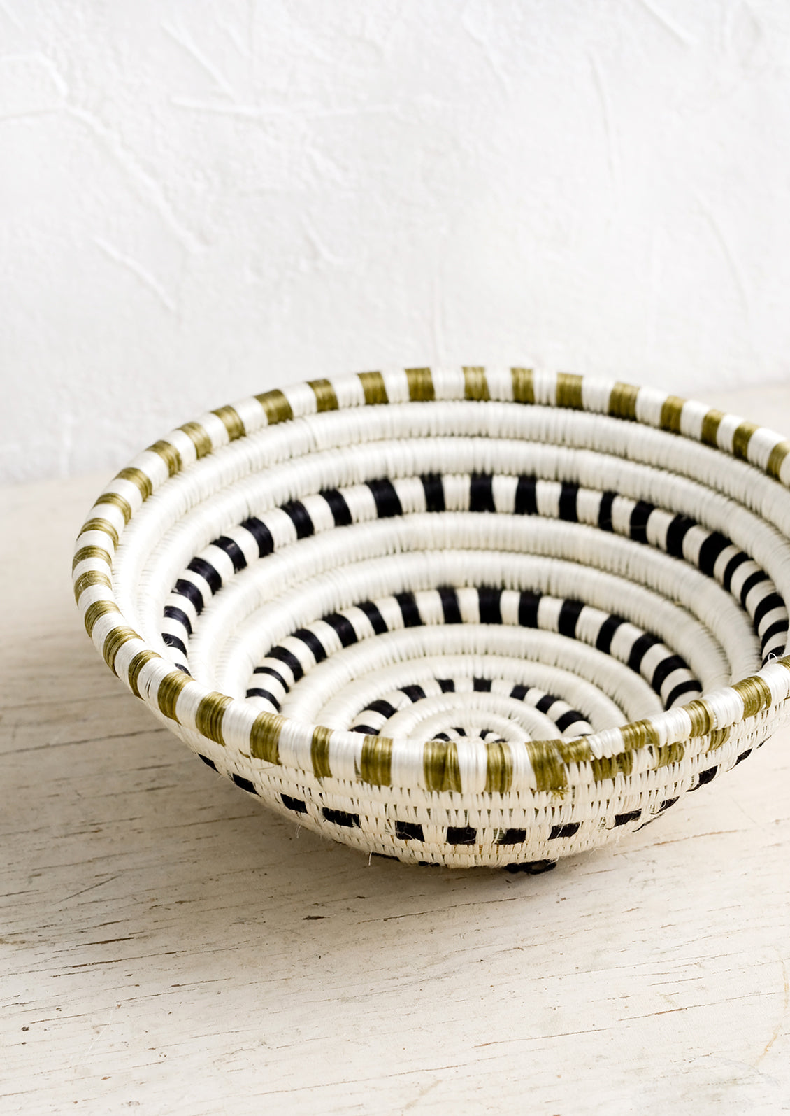 Crafted individually by hand, this intricately, individually woven basket gives worldly style to a table or wall. Display the larger size on the wall, or use it on the table to hold fresh fruit and vegetables. The smaller size makes the perfect catchall for coins, keys and more.