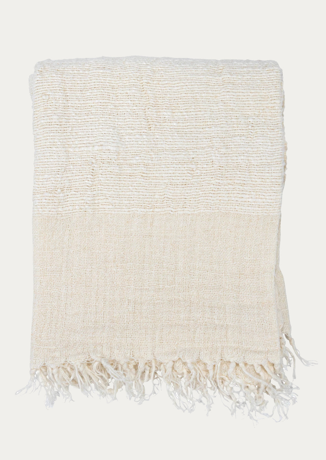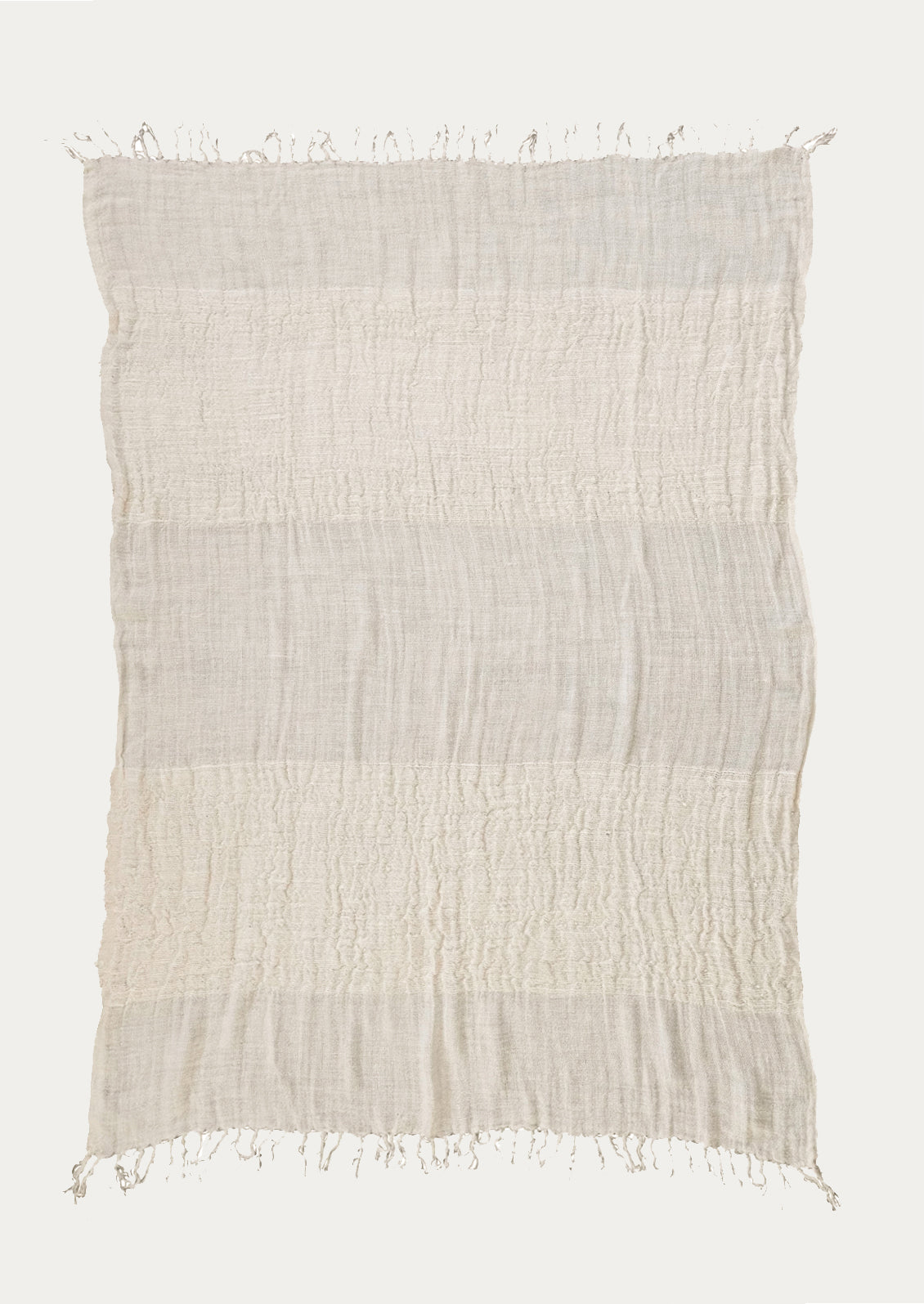 Alternating rows of a gauze-like weave with a slub weave give a subtle striped pattern to this neutral throw, crafted in pure linen.