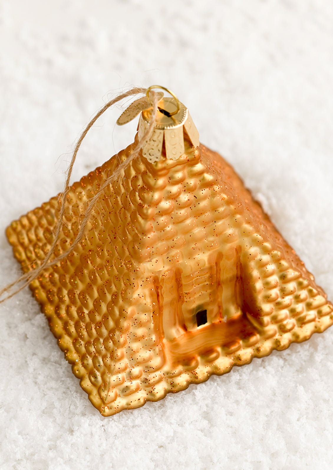 The holidays can always use a little bit of mystical magic — festively presented in glittering gold, this glass pyramid ornament honors one of the world's greatest wonders.