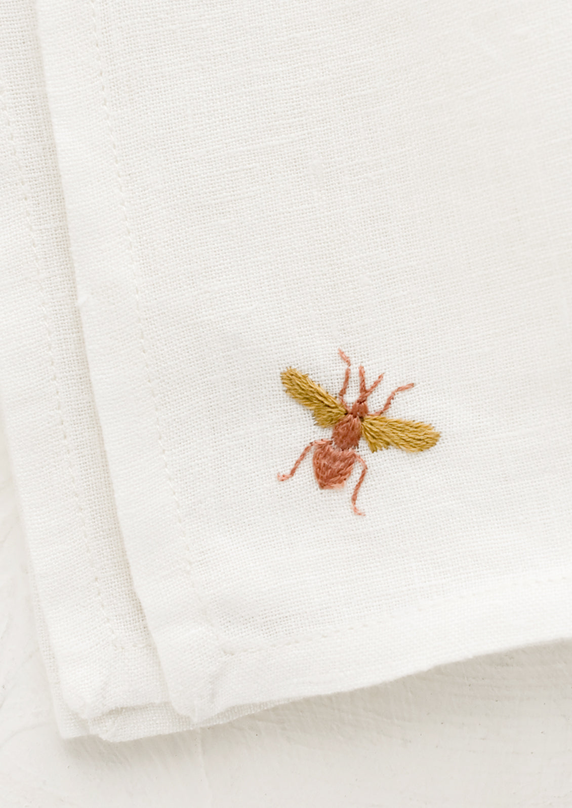 Hand-embroidered detailing gives an extraordinary feel to this pure linen napkin, handcrafted in Egypt. Each napkin is hand-embroidered by underprivileged women at the Malaika Embroidery Training Center in Egypt. Once proficient, the women leave the school and return to work from home, making way for more women to be trained there. Most have never held a needle before.