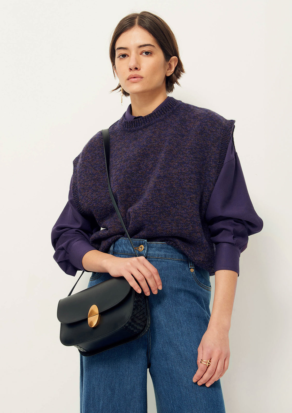 | Details | Ribbed crewneck and arm openings Leather logo patch at back neck |