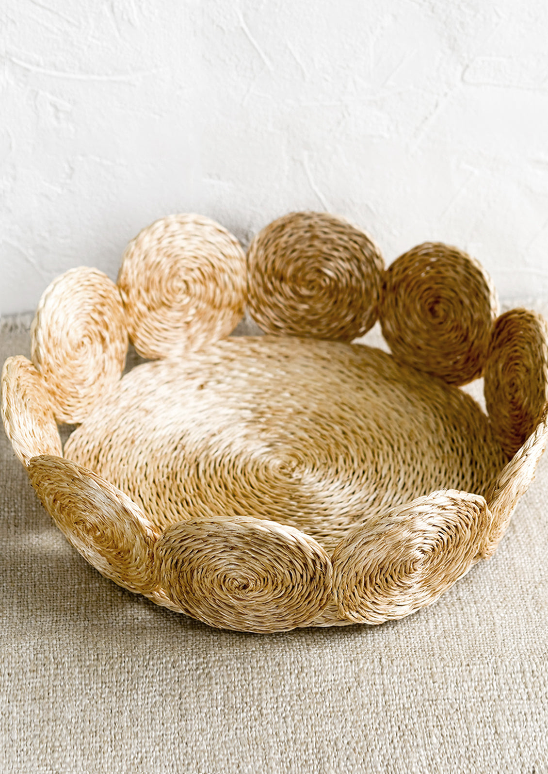 For use as a fruit basket in the kitchen or for holding remotes and knick knacks on the coffee table, the uses for this shallow basket vary. Made entirely from natural fiber (abaca, derived from banana plants), its structure is rigid and sturdy.