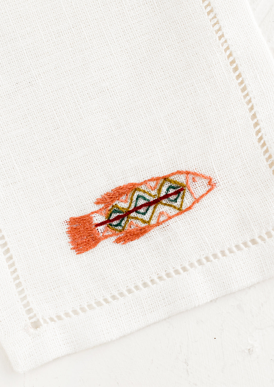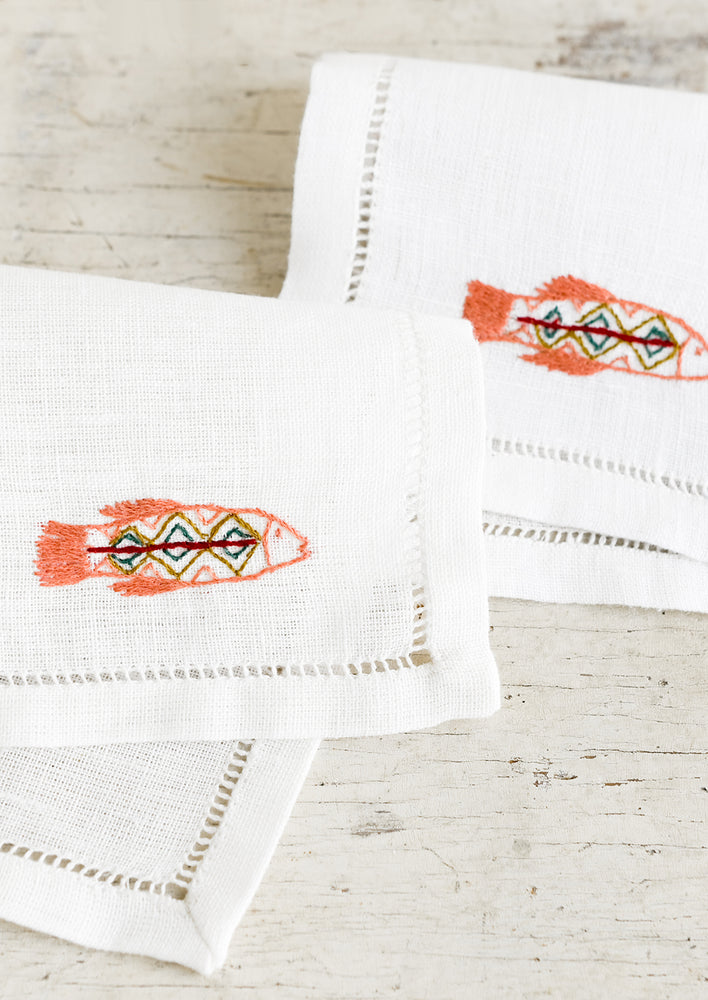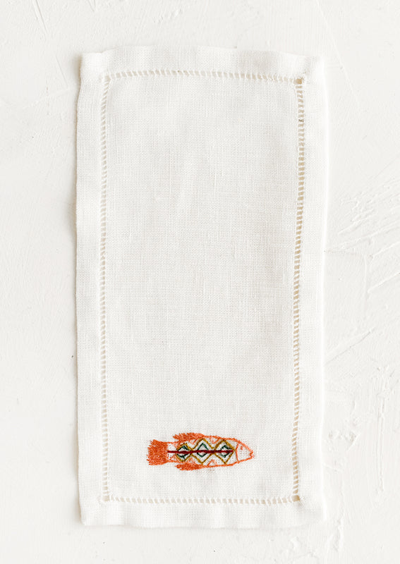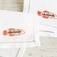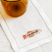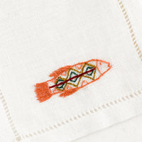 Hand-embroidered detailing gives an extraordinary feel to this pure linen cocktail napkin, handcrafted in Egypt. Each napkin is hand-embroidered by underprivileged women at the Malaika Embroidery Training Center in Egypt. Once proficient, the women leave the school and return to work from home, making way for more women to be trained there. Most have never held a needle before.