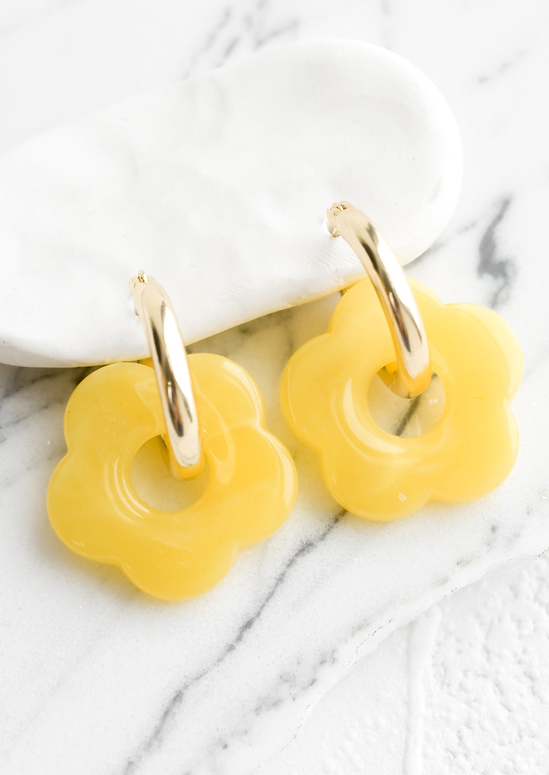 Marbled resin flowers dance along an easy-to-wear huggie hoop on these playful earrings for year-round blooms, crafted in shiny 14k gold plated brass.