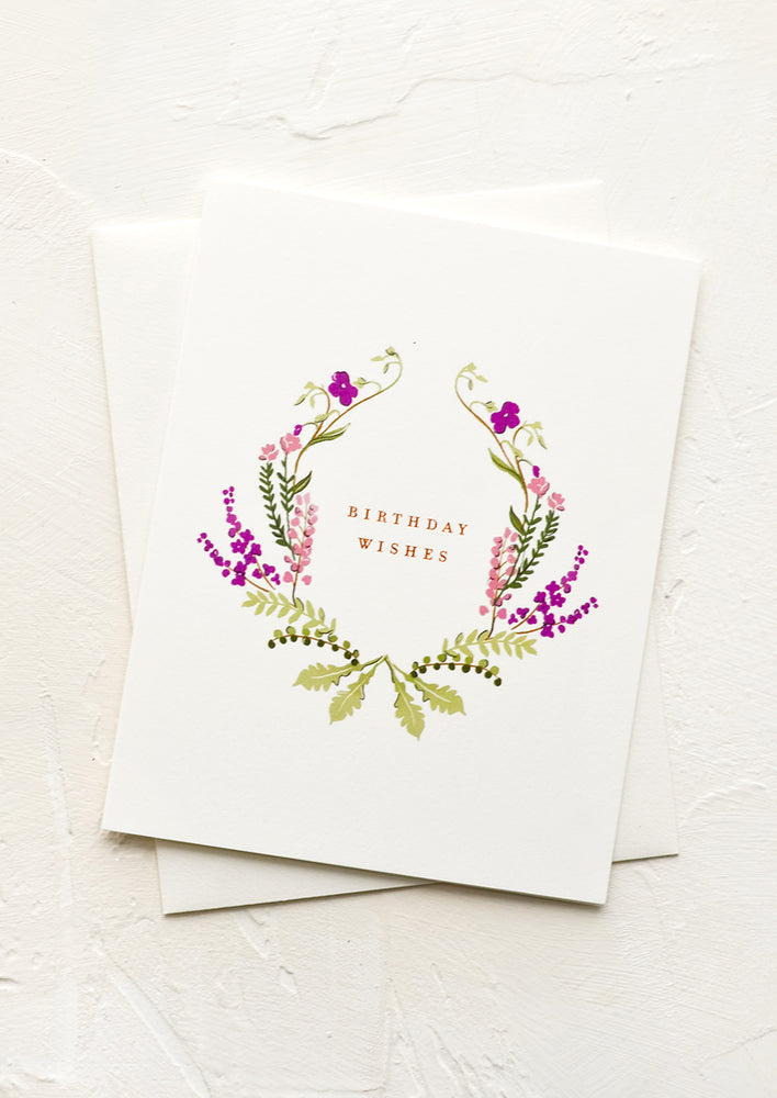 Blooming floral fronds frame a message imprinted in copper foil on this beauty-in-botanicals birthday card.