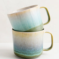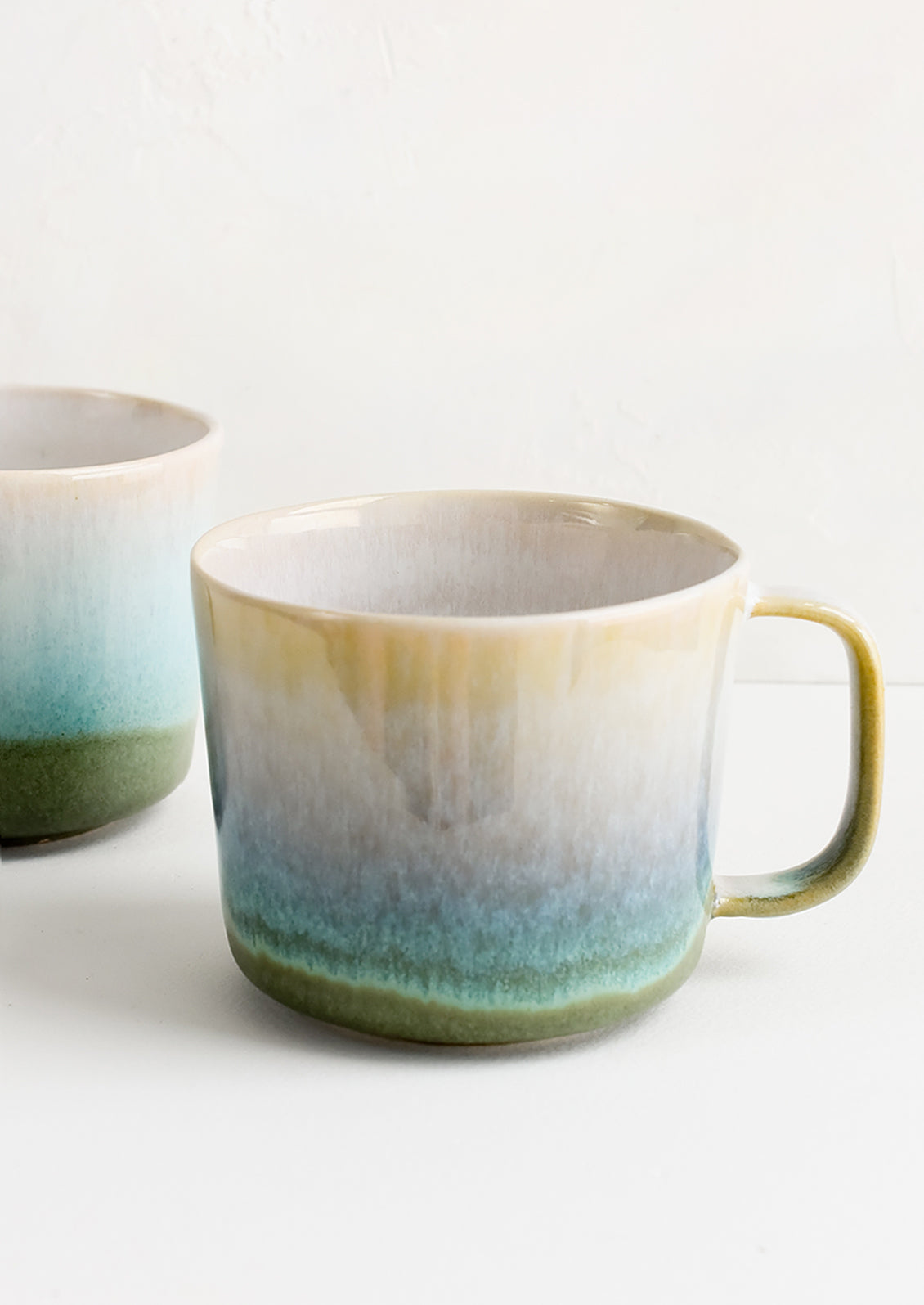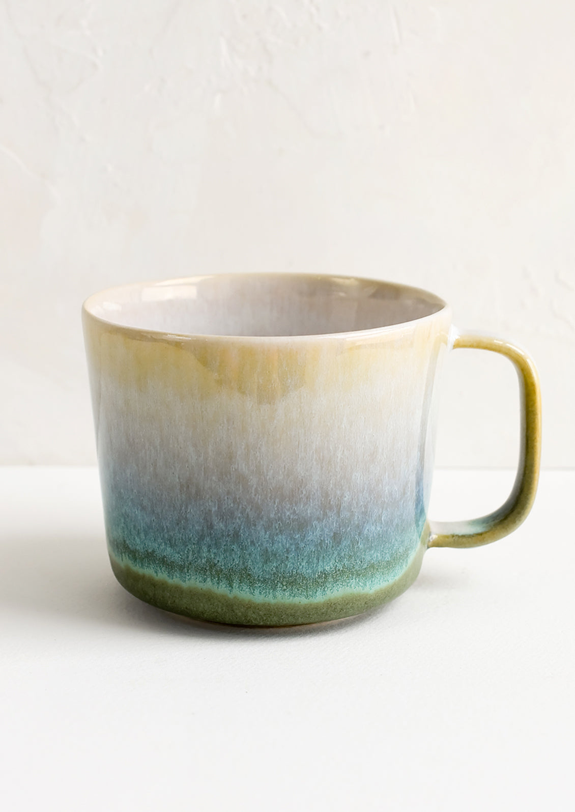 A gradient glaze glows in glossy ceramic on this borealis-inspired mug—each one shows off a slightly different arrangement of color.