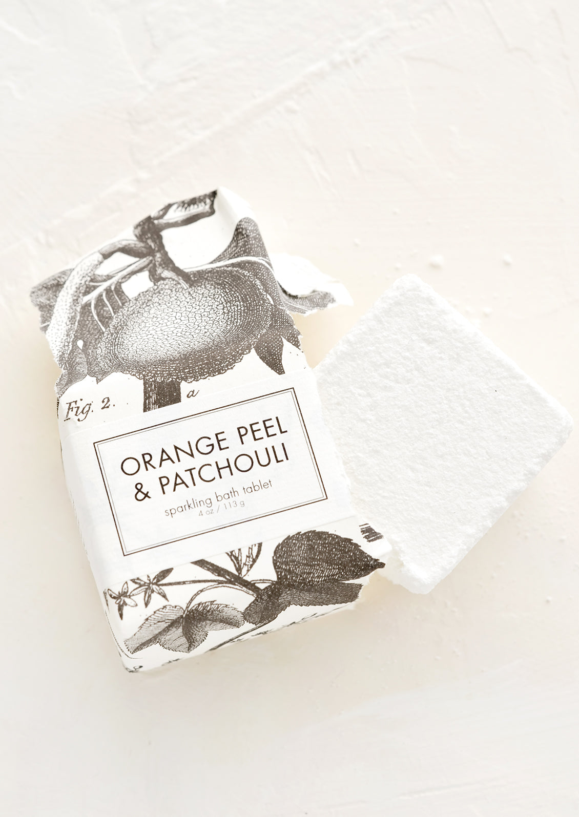 When placed in a full tub of water, this bath tablet's formula fizzes and distributes fragrance and skin soothing oils throughout the water—all the fun of a bubble bath, without the drying foaming agents. The whole tablet can be used either one time (recommended), or split up into multiple pieces.
