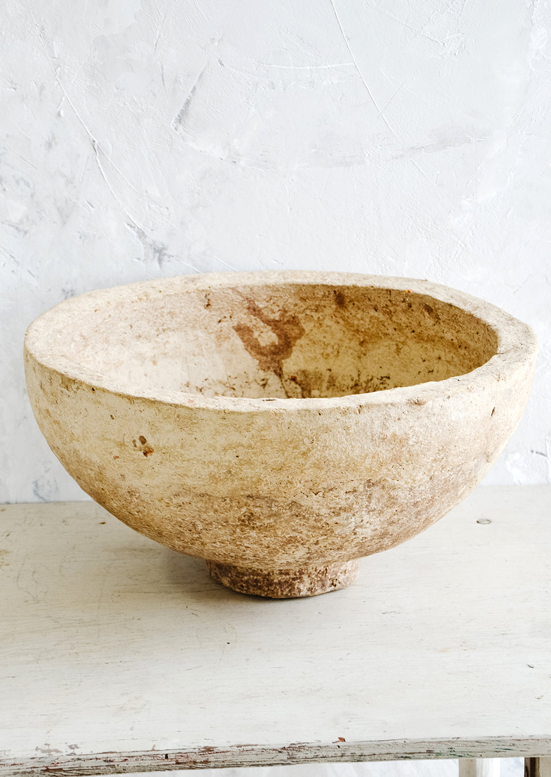 Each one its own work of art, these found vintage paper maché bowls are truly one of a kind—rich with character, we love them used to style a shelf or console.