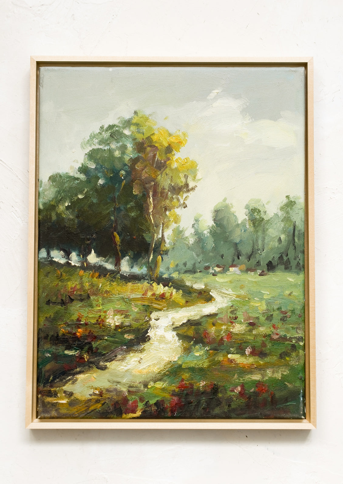 Painted in oil with thoughtful, thick brushstrokes and the perfect amount of texture, this original landscape painting shows off a rich and vibrant palette in a low-profile natural maple frame.