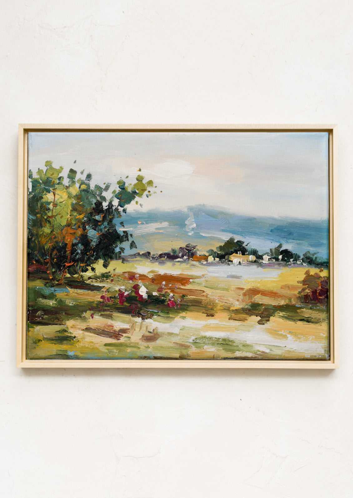 Painted in oil with thoughtful, thick brushstrokes and the perfect amount of texture, this original landscape painting shows off a rich and vibrant palette in a low-profile natural maple frame.