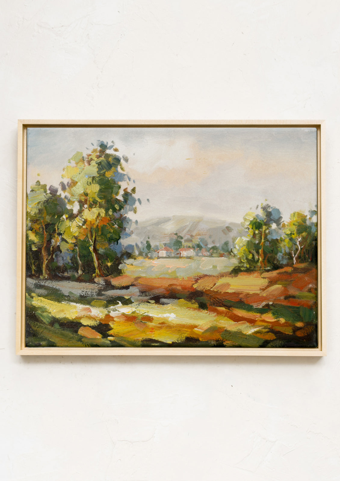 Painted in oil with thoughtful, thick brushstrokes and the perfect amount of texture, this original landscape painting shows off a rich and vibrant palette in a low-profile natural maple frame.