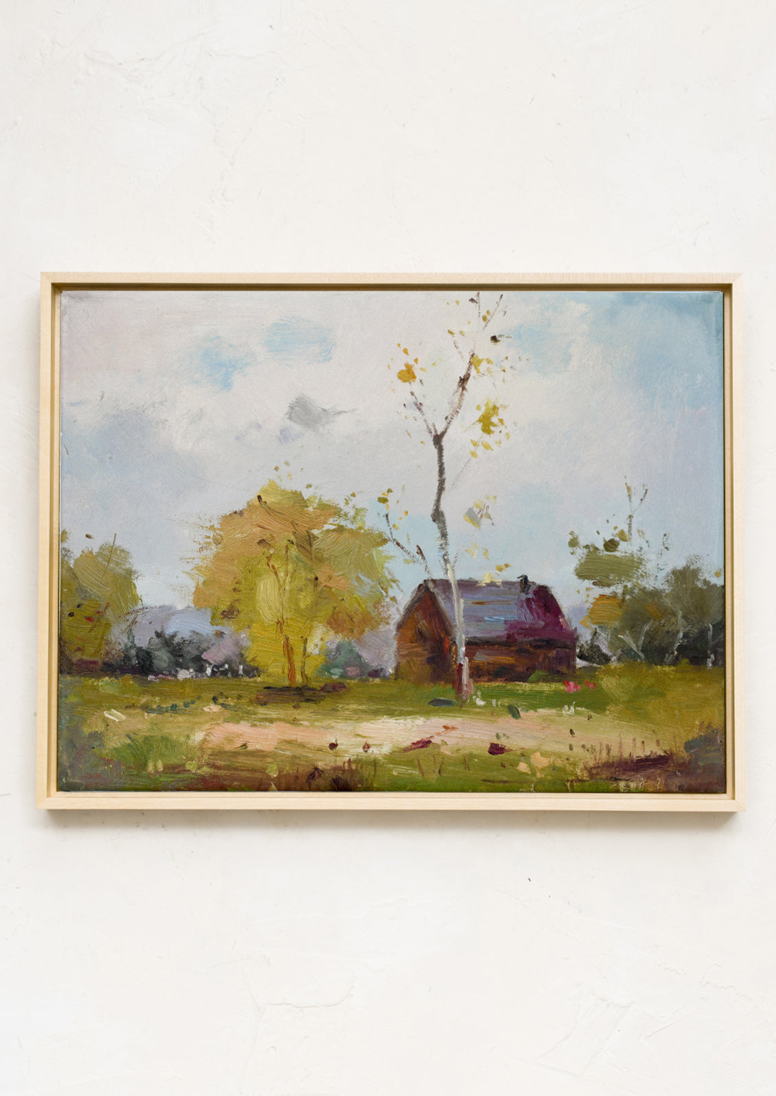 Painted in oil with thoughtful, thick brushstrokes and the perfect amount of texture, this original landscape painting shows off a rich and vibrant palette in a low-profile natural maple frame.