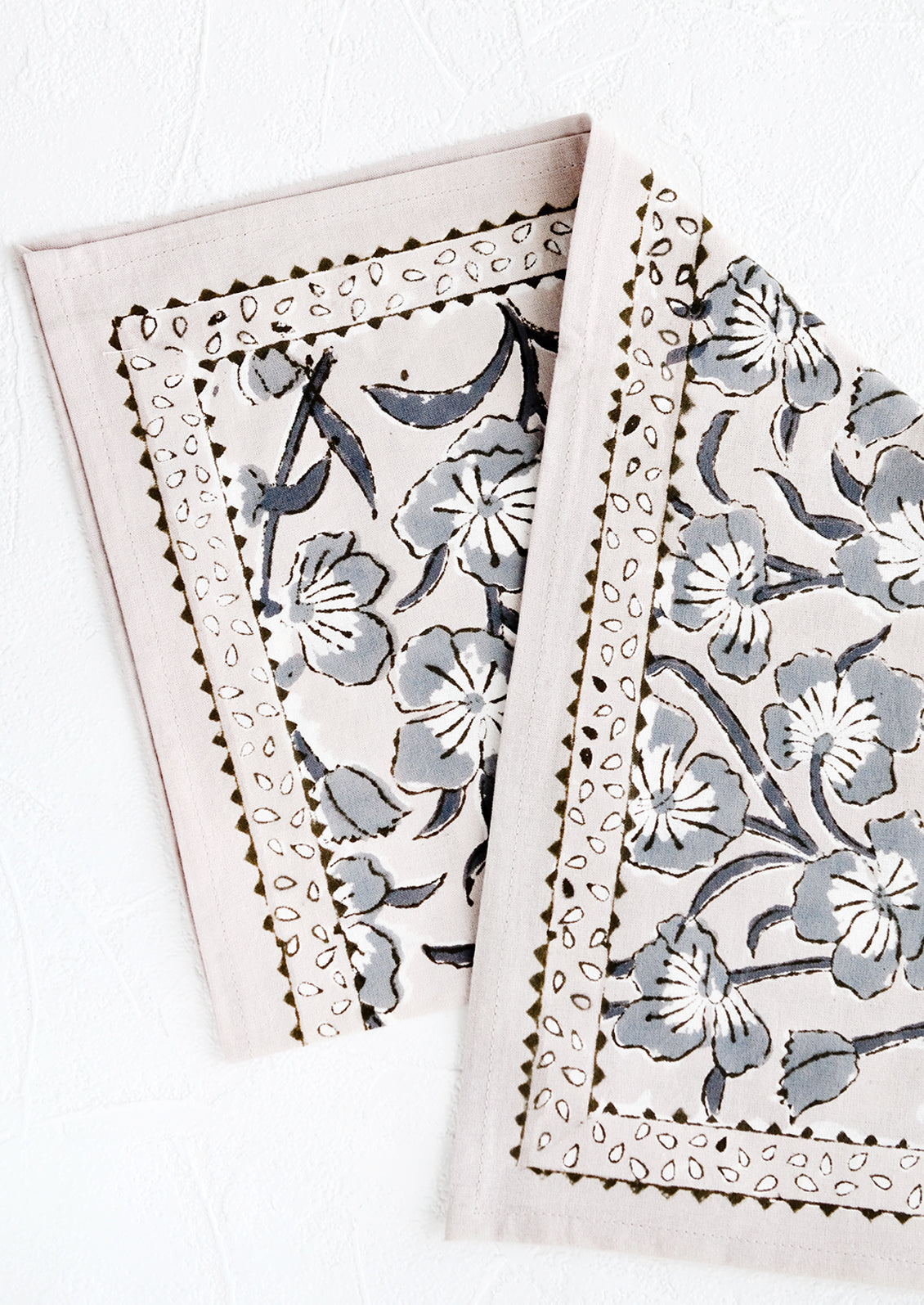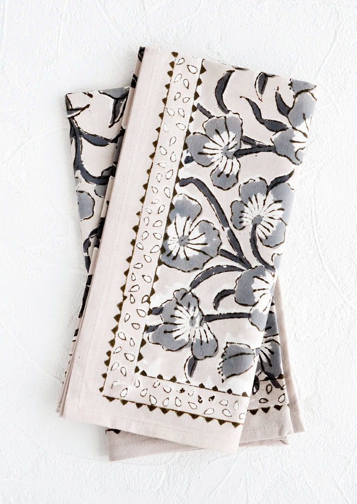 A bohemian floralscape gives a romantic feel to these cotton napkins, giving a garden party feel to even the most humble weeknight dinners.