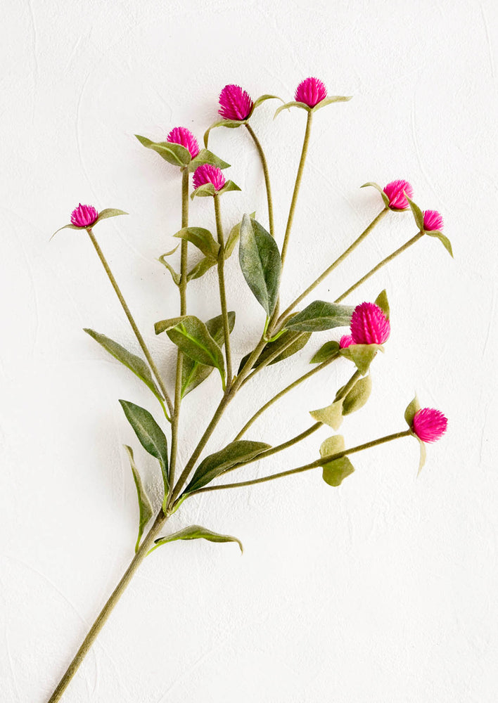 From our wildflowers collection, this realistic looking faux gomphrena stem features vibrant pink-purple buds and true-to-life leaves.