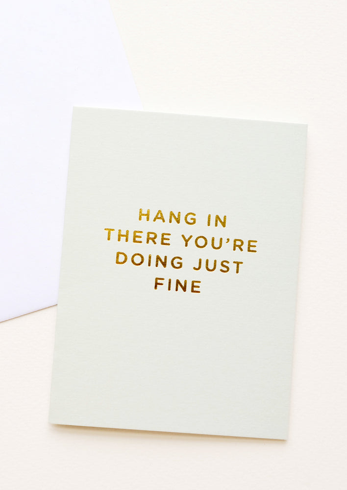 This pint-sized card sends a supportive message in a soft sage green hue, printed with simple golden text.