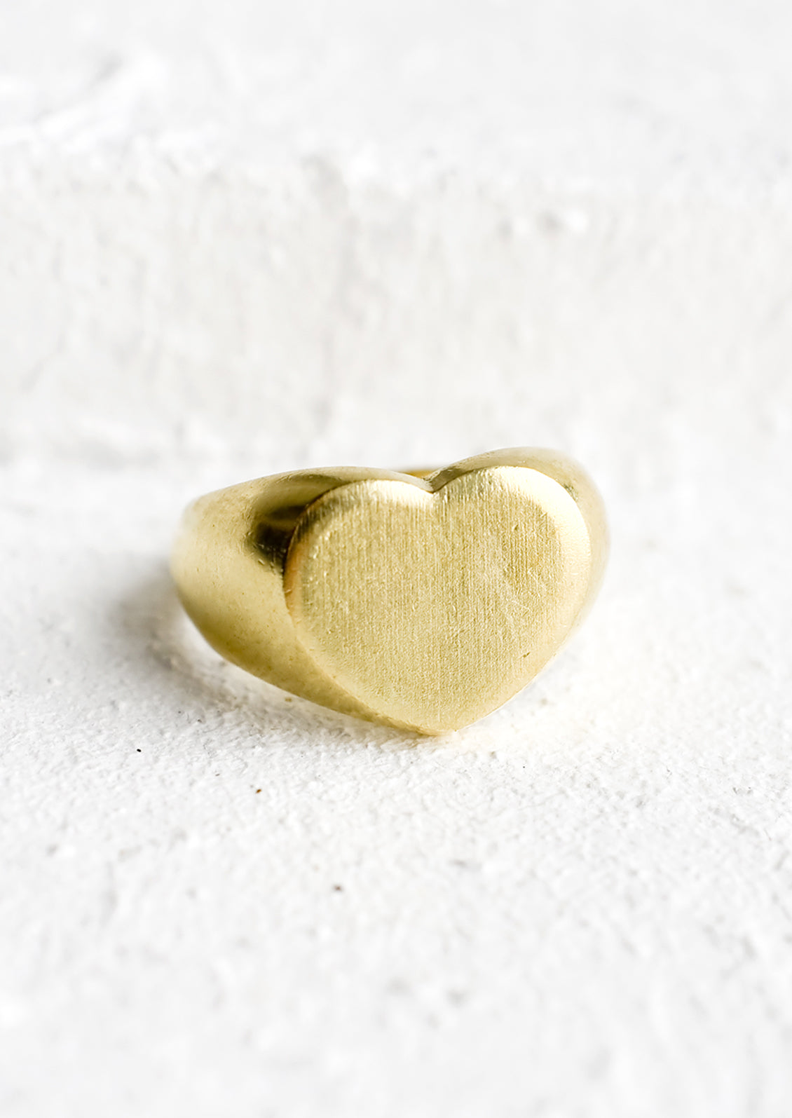 In an easy-to-wear, adjustable one-size-fits-all silhouette, this signet-like ring shows off a heart-shaped silhouette in raw, solid brass.
