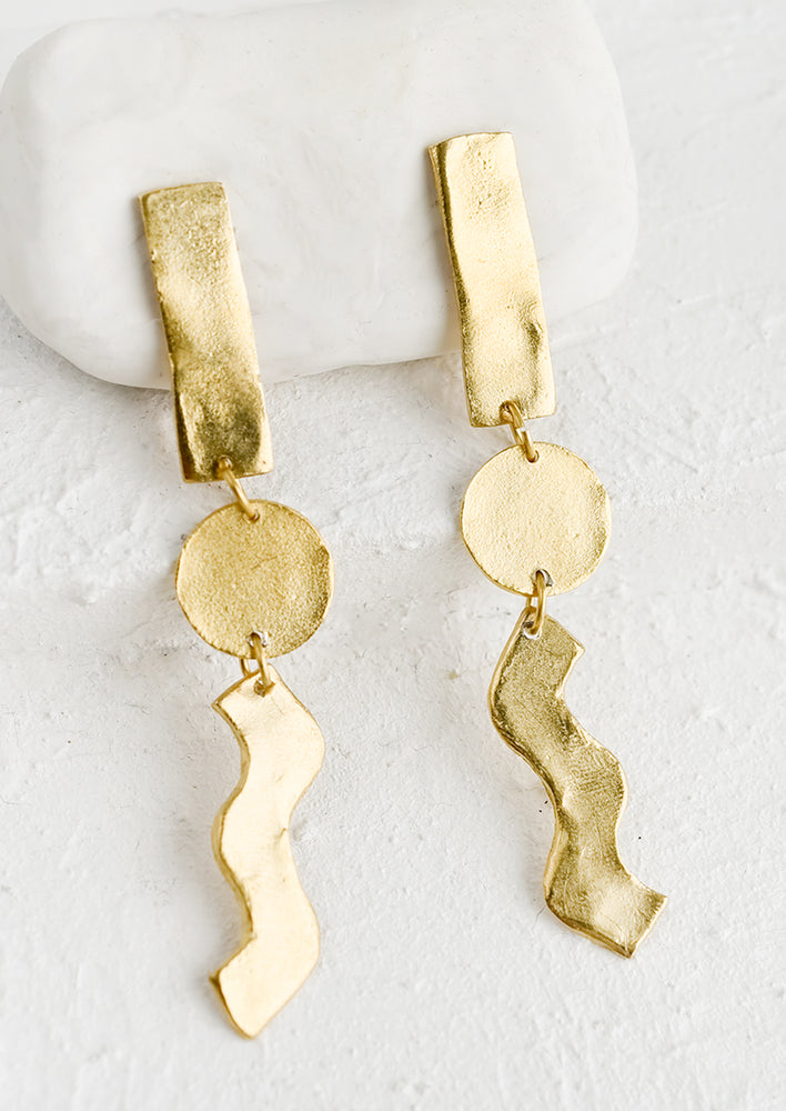 A playful design and imperfect texture give effortless juxtaposition to these gilded earrings, triple plated with 24 karat gold.