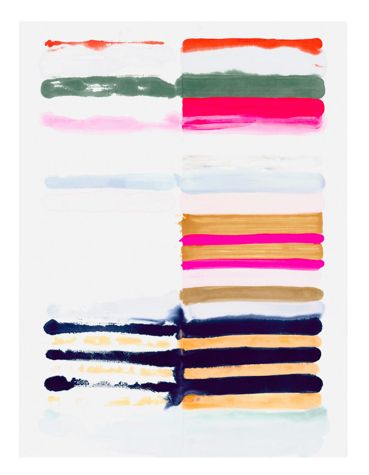 A stacked form shows off a cheery study of color in this print from Kristi Kohut. Her work explores the theme of beauty in both nature and in our culture and how both reflect such universal truths as the lure of beauty, aging and the effects of our constant exposure to societal standards of beauty in the media.