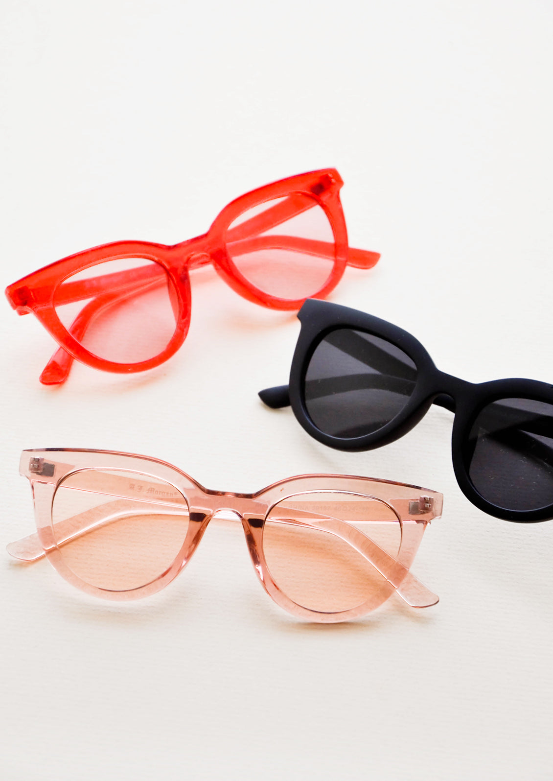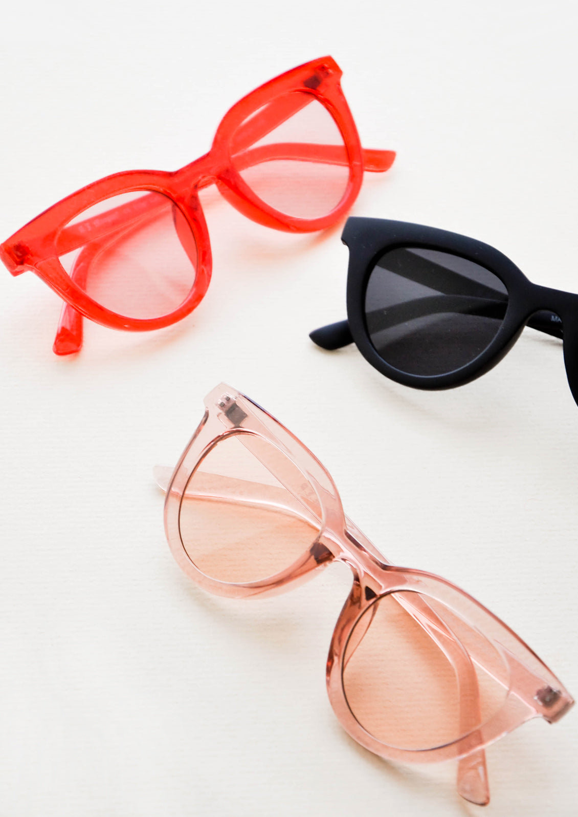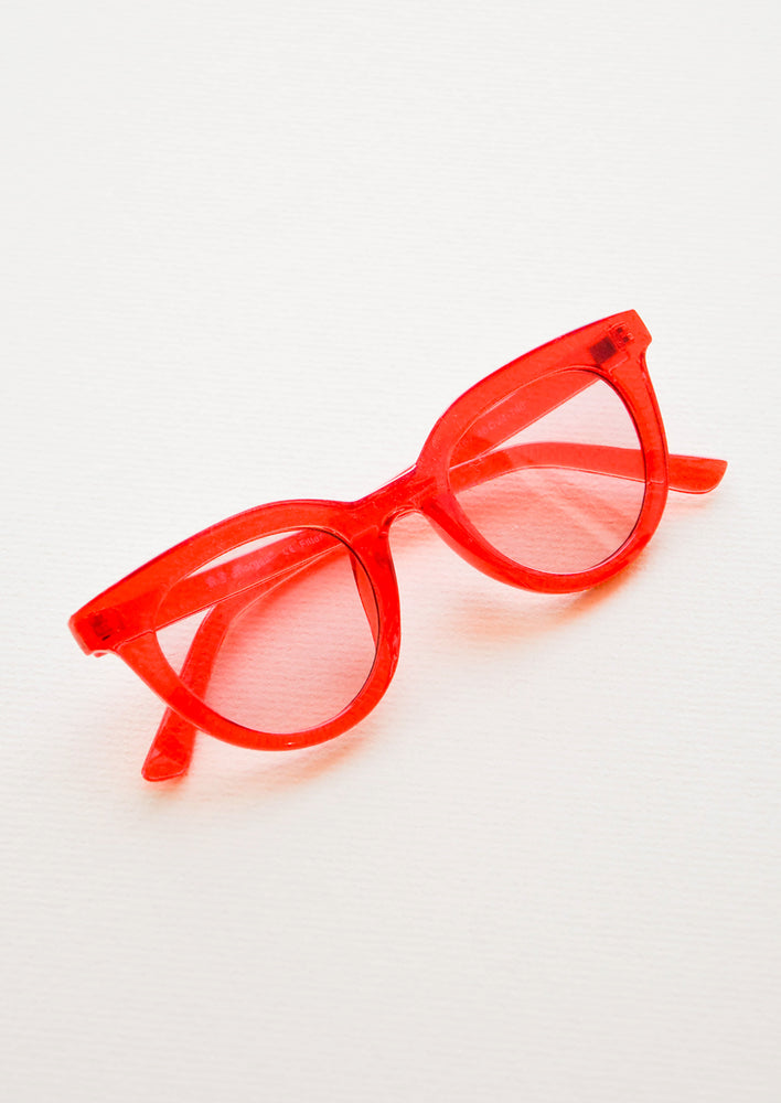 In clear, colored crystal with tonal tinted lenses, these easy-to-wear sunglasses (they look effortlessly good on pretty much everyone) show off a cat-eye-meets-wayfarer silhouette.