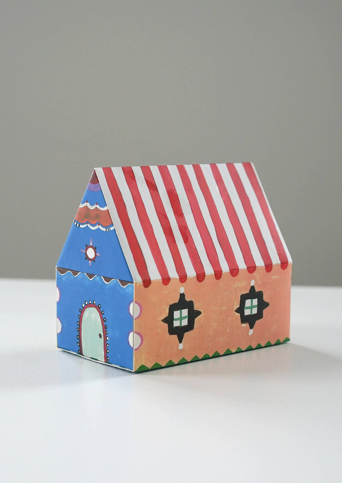 What began as a 3D model made from a cut up cereal box, and each side was hand painted at a kitchen table (you can even see the brushstrokes!) resulted in quite possibly the most unique box of matches we've come across. The sliding drawer holds 100 4" matches (with colorful match heads, of course!), and two strikers on the back side give you ample firing power. Pro tip: when the matches run out, just replace them with other 4" matches!